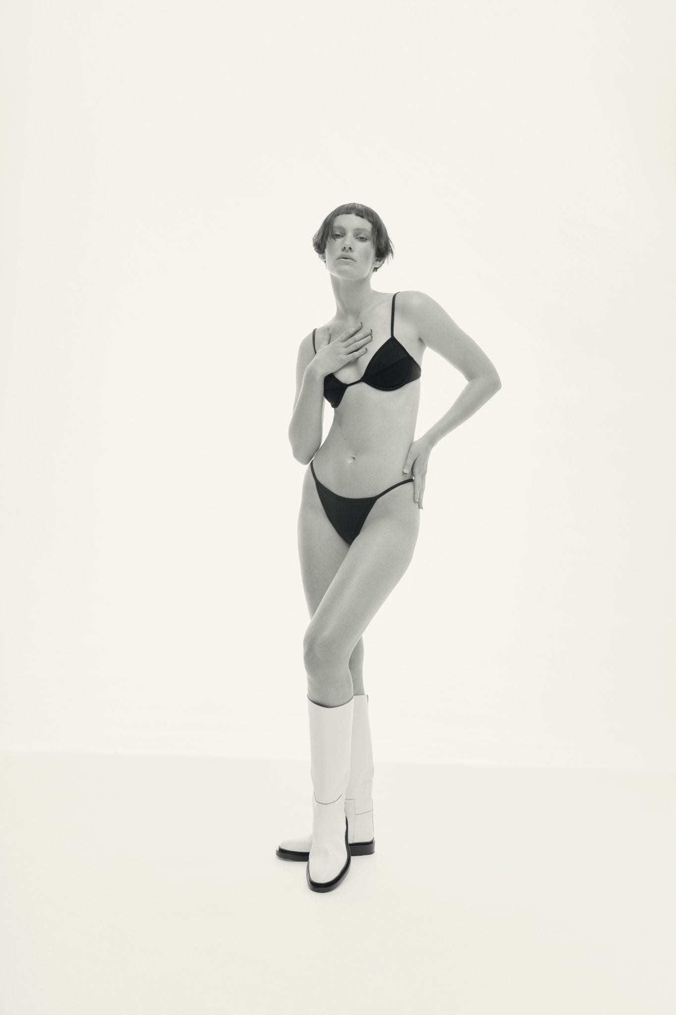 Emily wears our Hendry balconette and Hendry bikini brief.