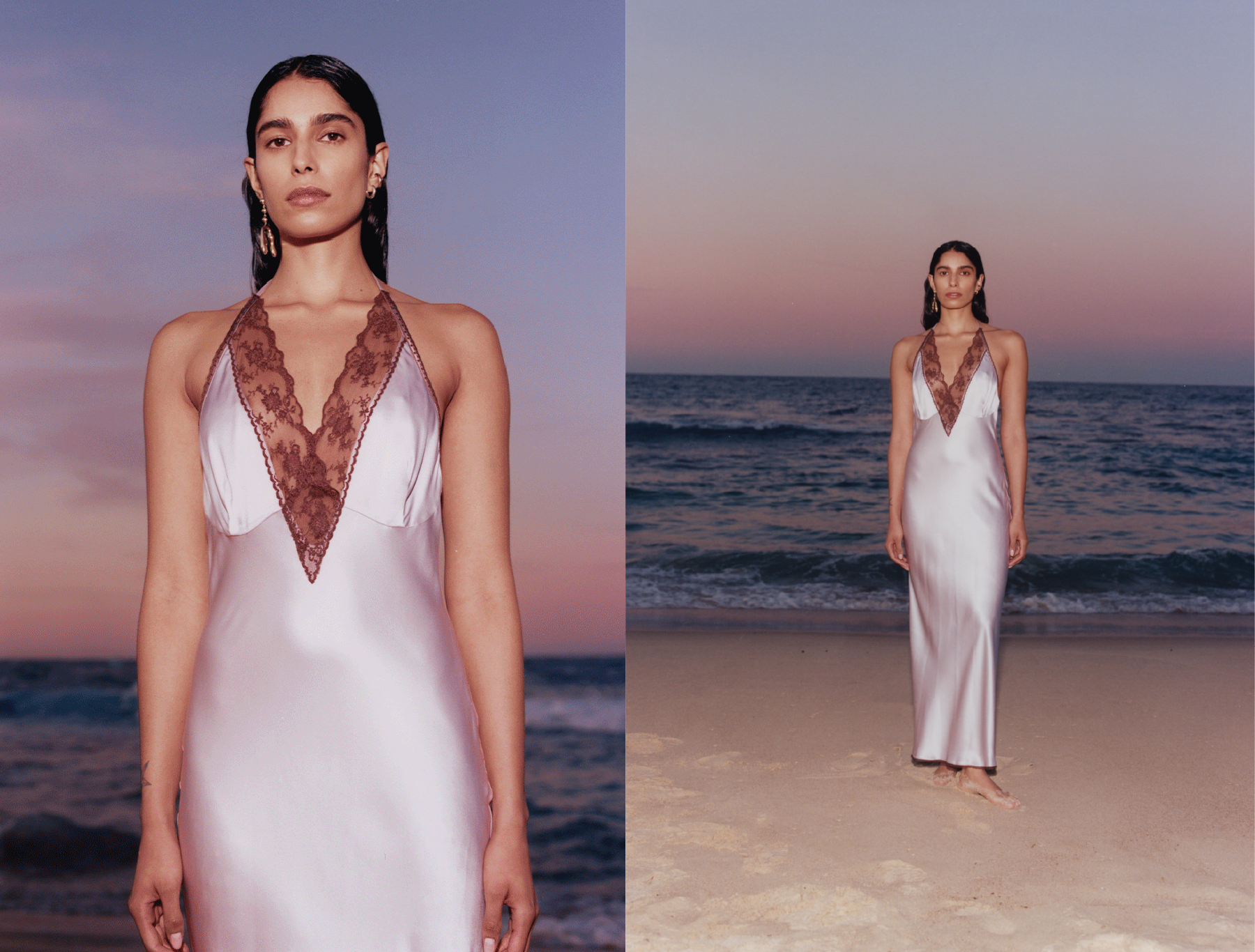 The Aries Mini, dreamt up by our design studio as a nod to the classic gown with high hemmed appeal. Drawing on lingerie slips, the mini is designed to be worn alone or layered as a playful statement.