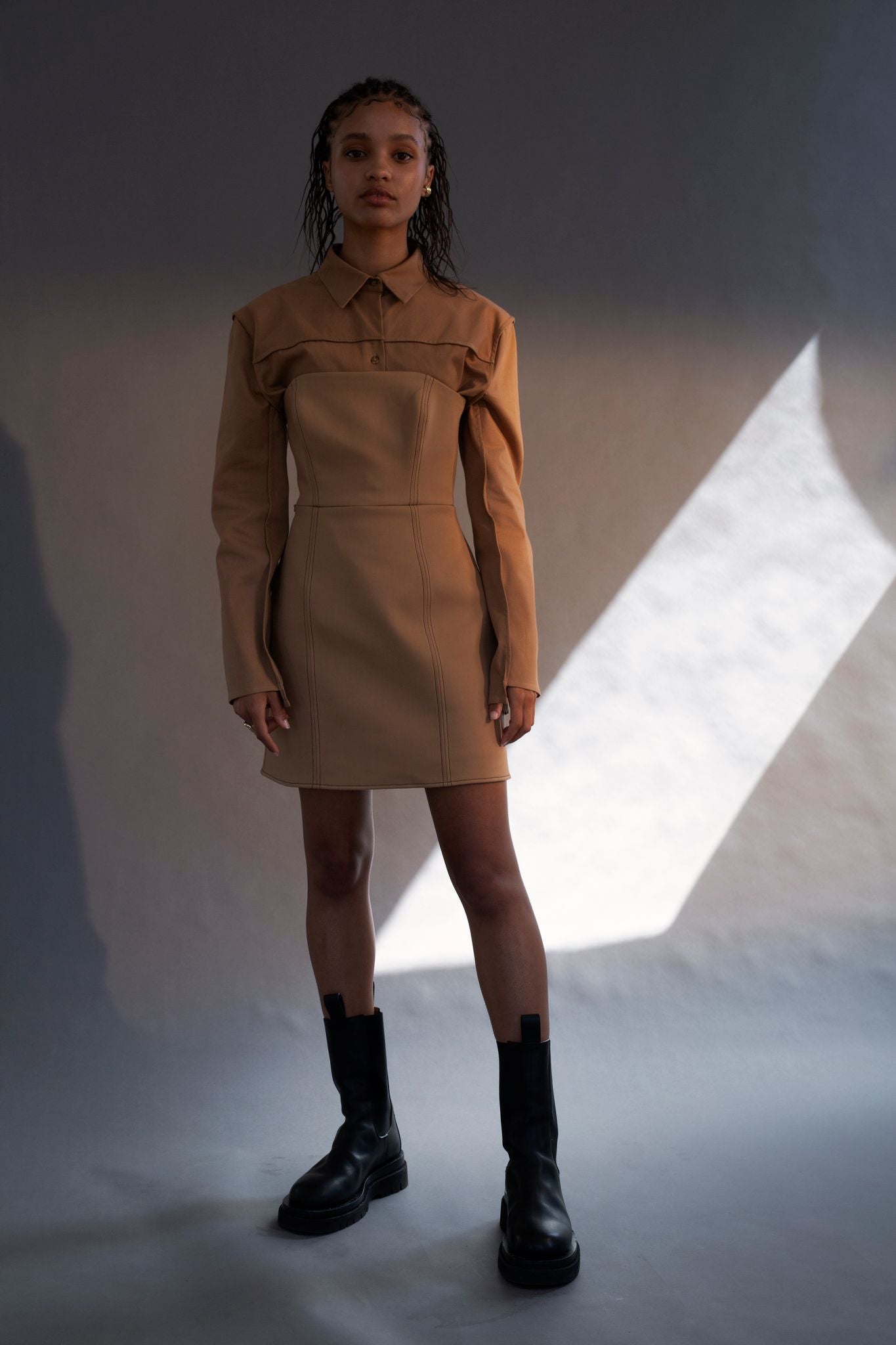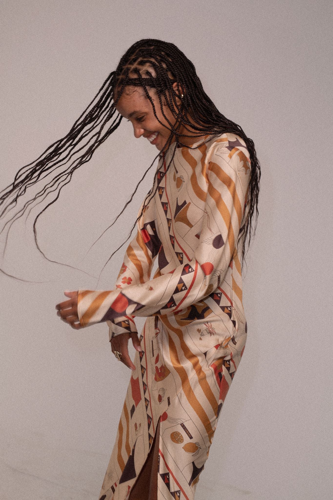 Crystal in our Soleil long sleeve dress