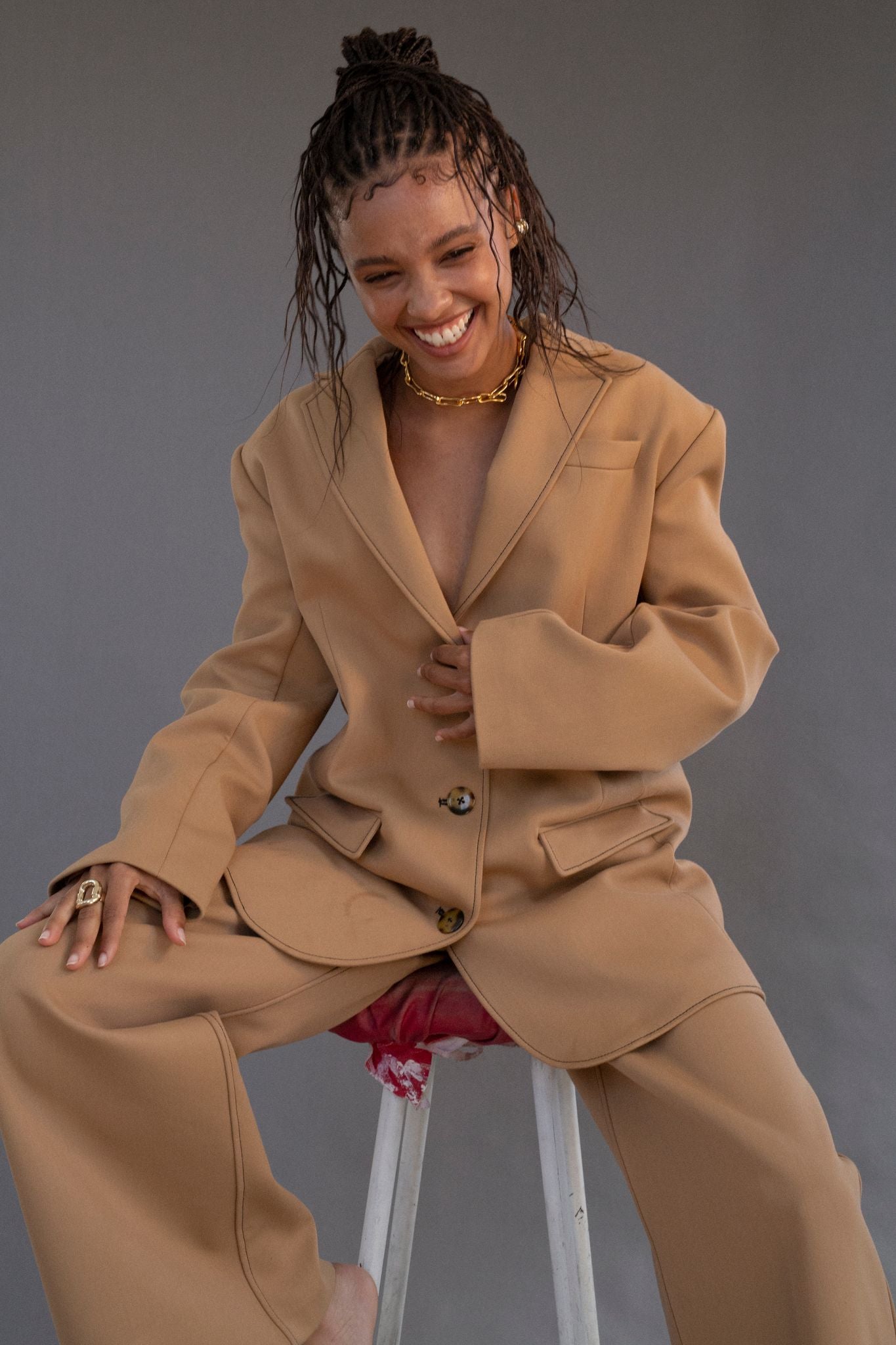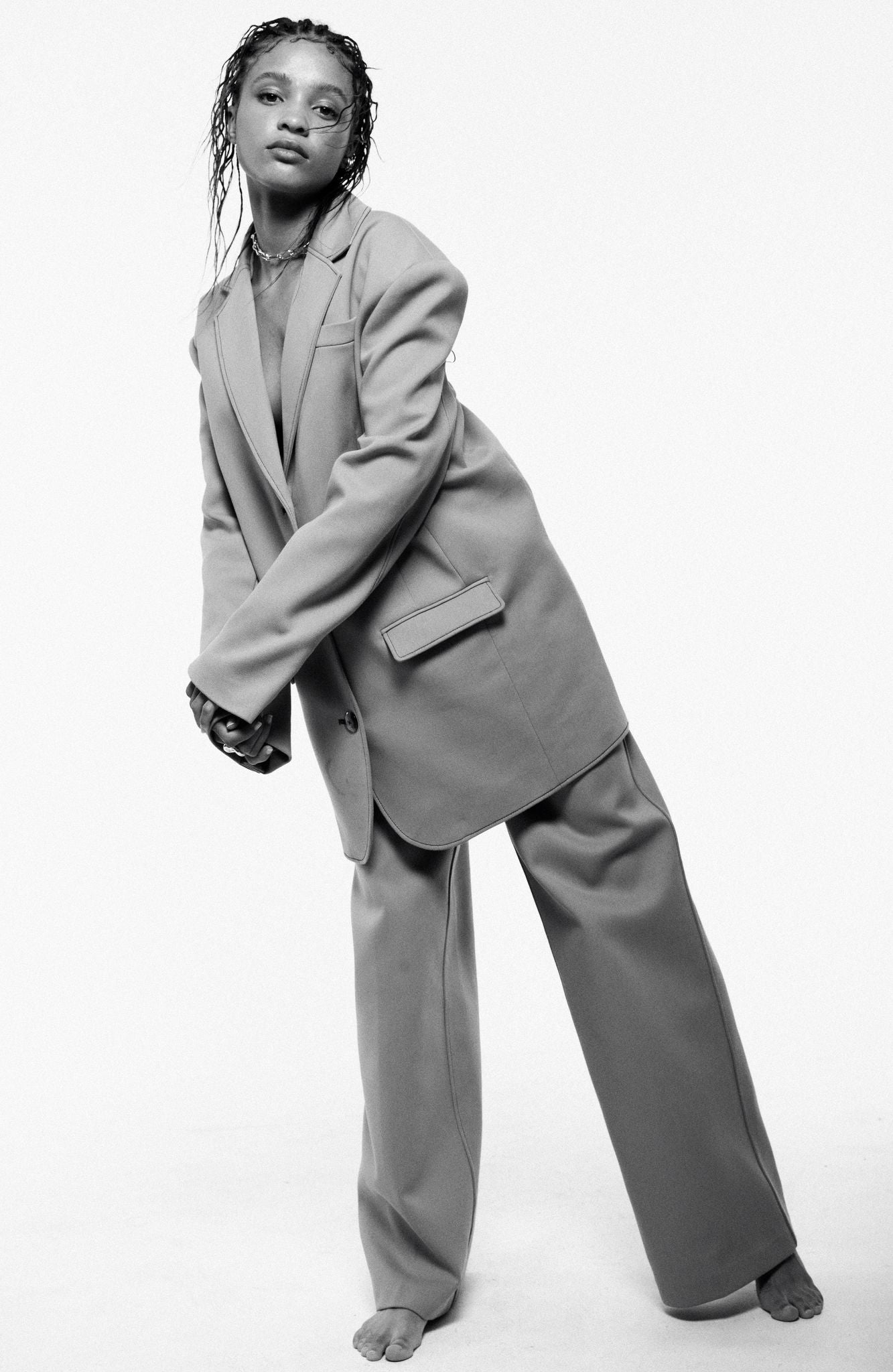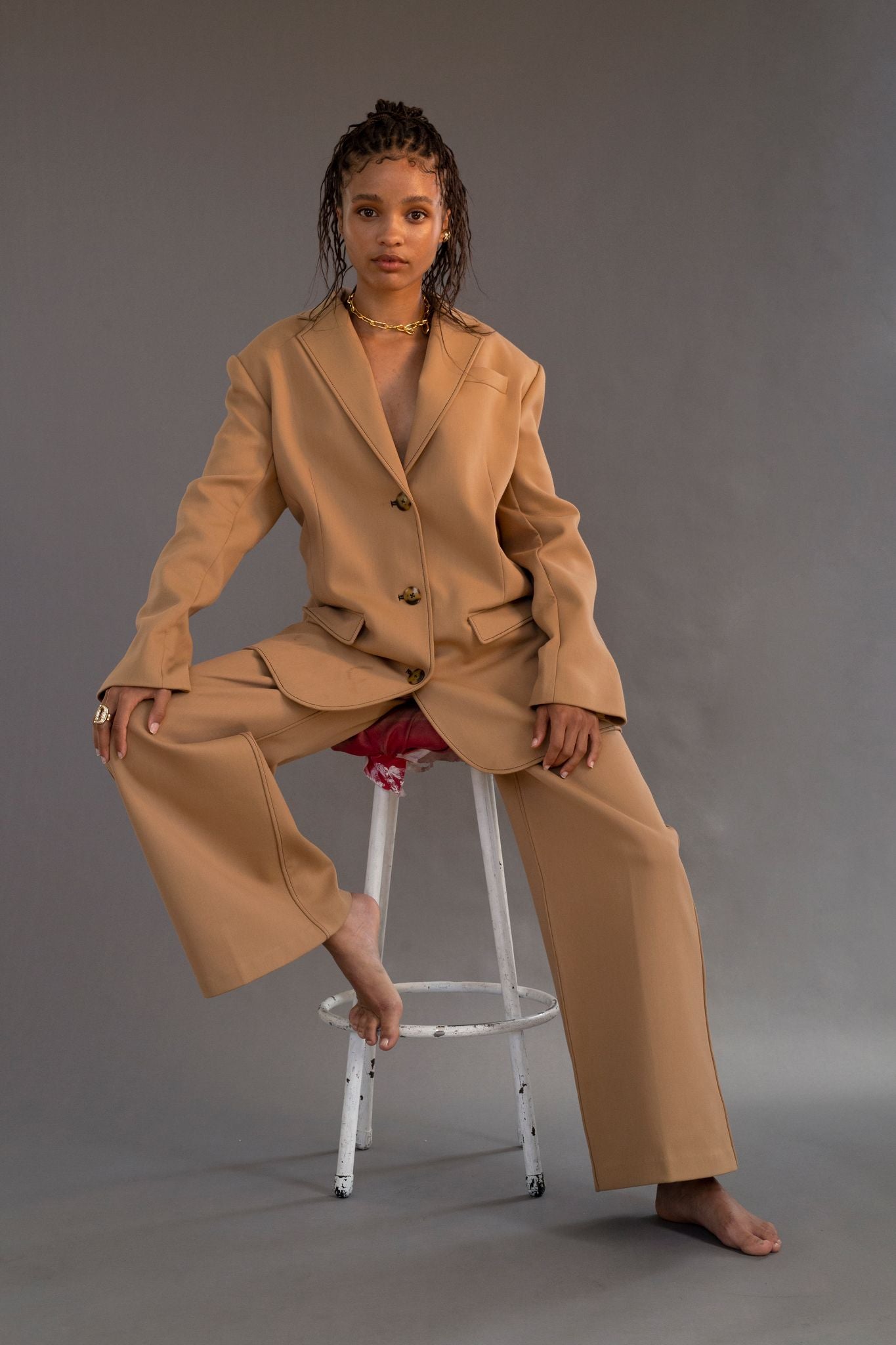 Crystal in the Andre blazer and Andre wide leg pant
