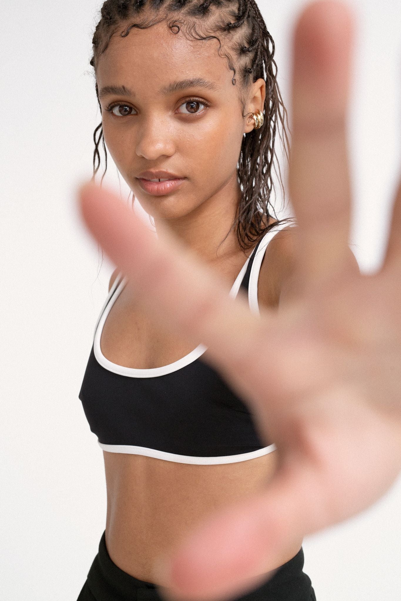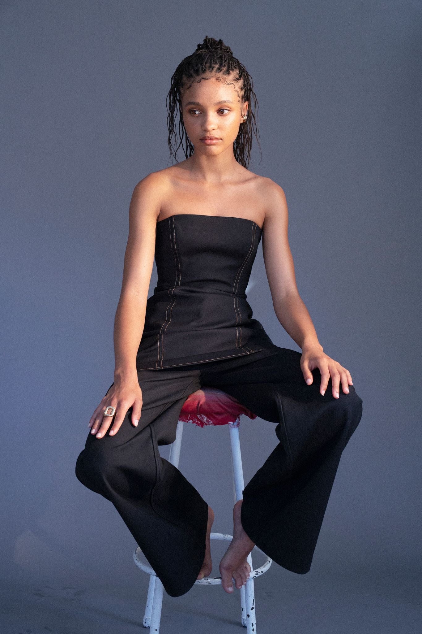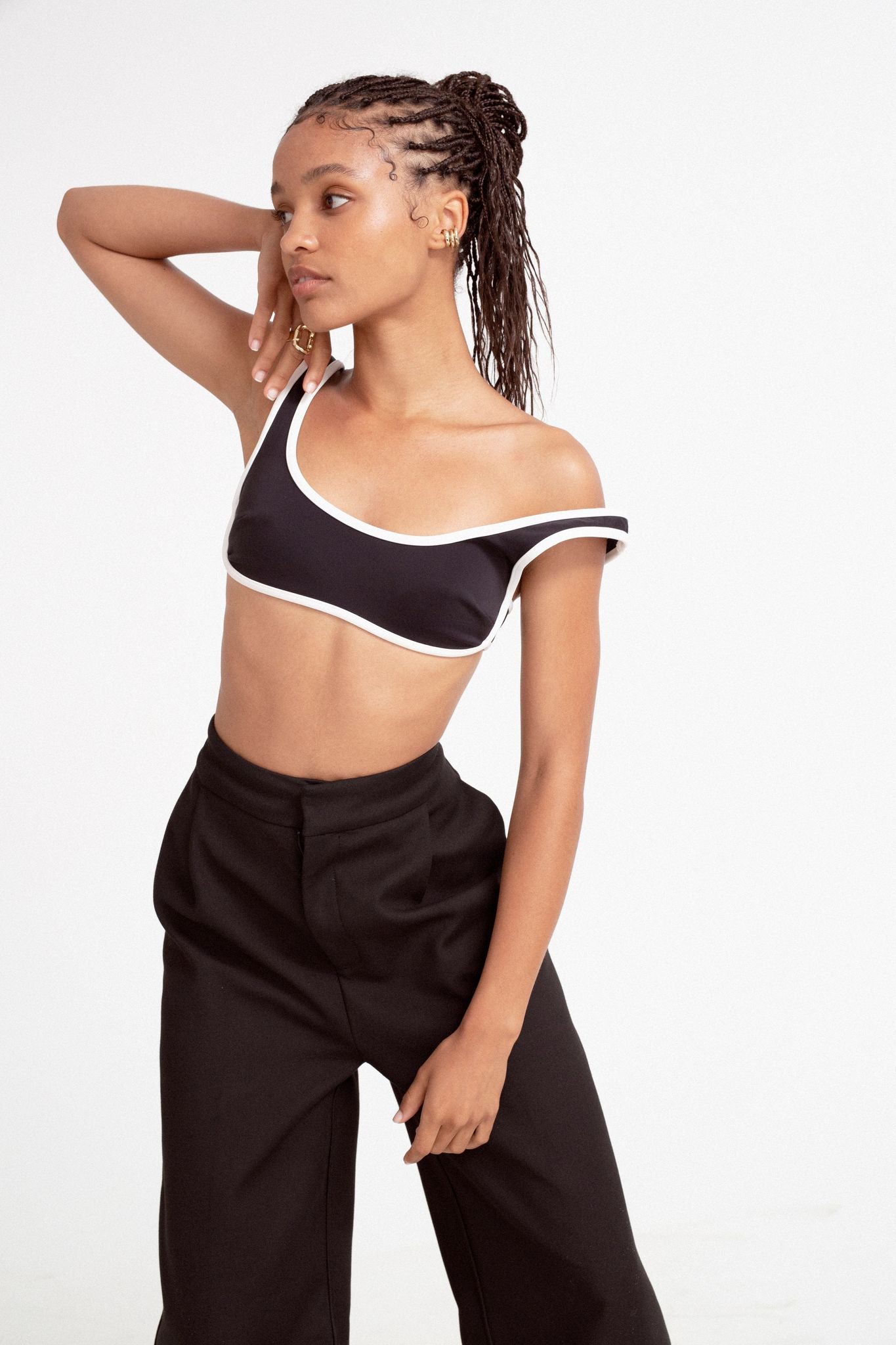 Crystal in the Claude contrast crop + Andre wide leg pant