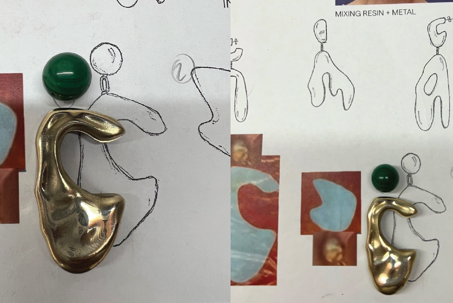 Our design team worked closely with you to pull shapes from Frankie’s artworks to which were then formed into our newly launched singular earring collection. From sketches, to moulds, to reality – can you talk us through the process of crafting the earrings?