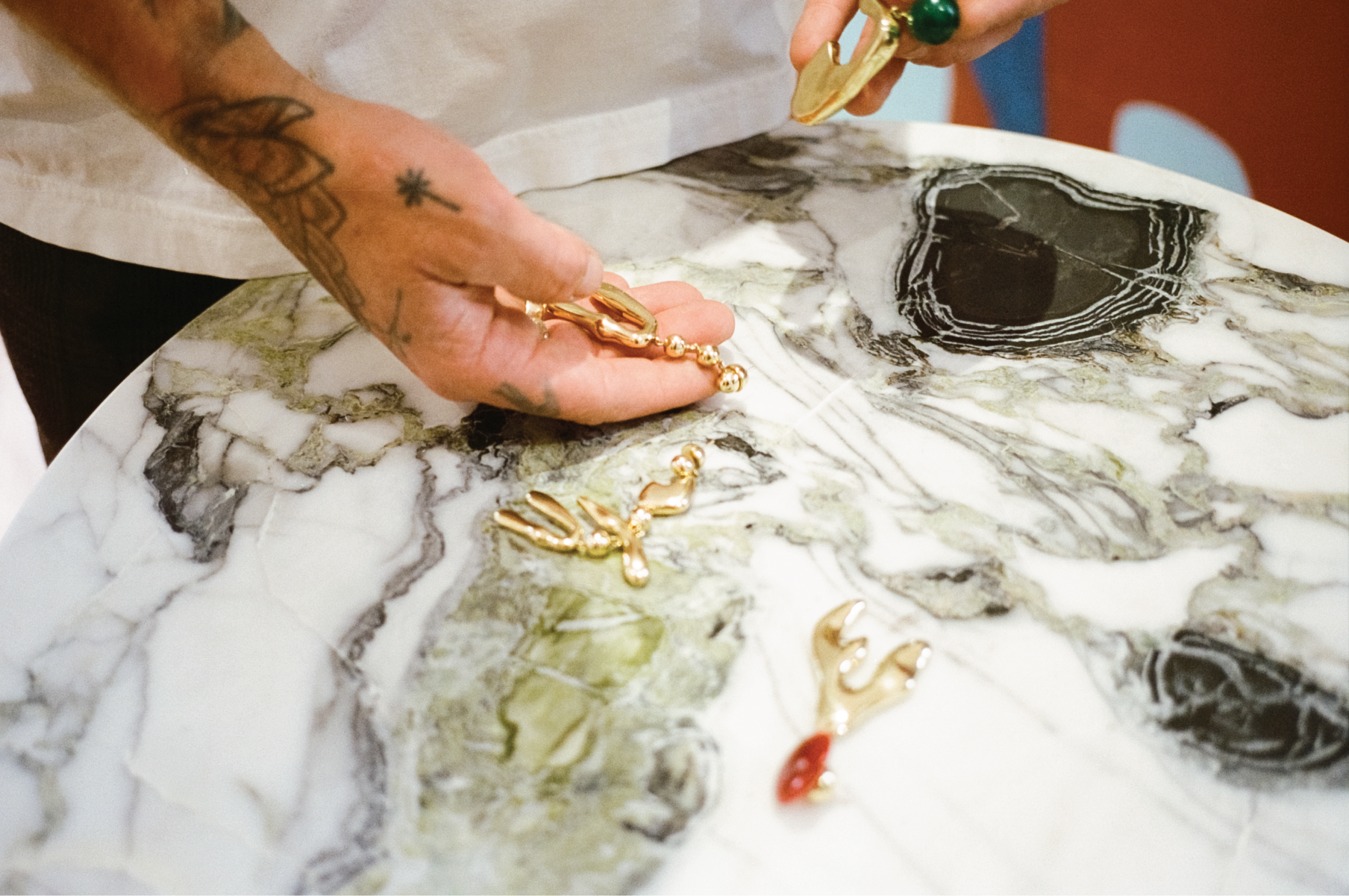 SIR. The jewellery collection features resin bead details, pulling from colours inspired by the artworks Frankie created for SIR. Where do you pull inspiration from in your Henson & Gold pieces?