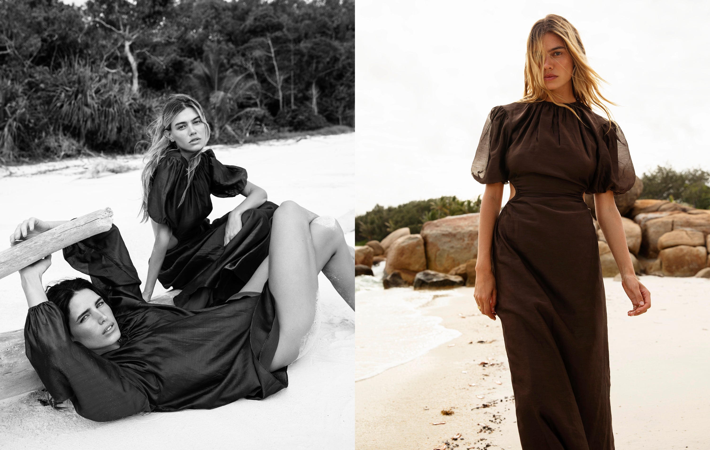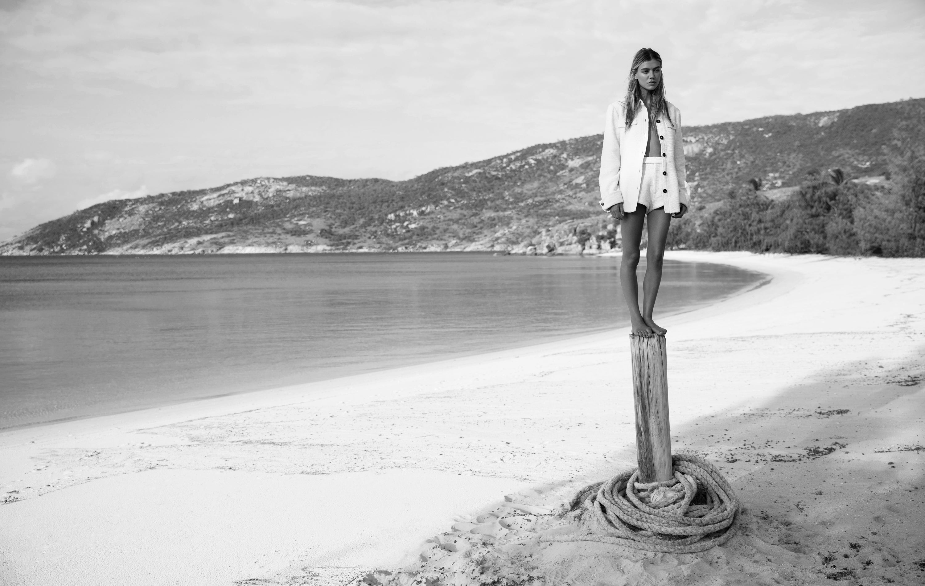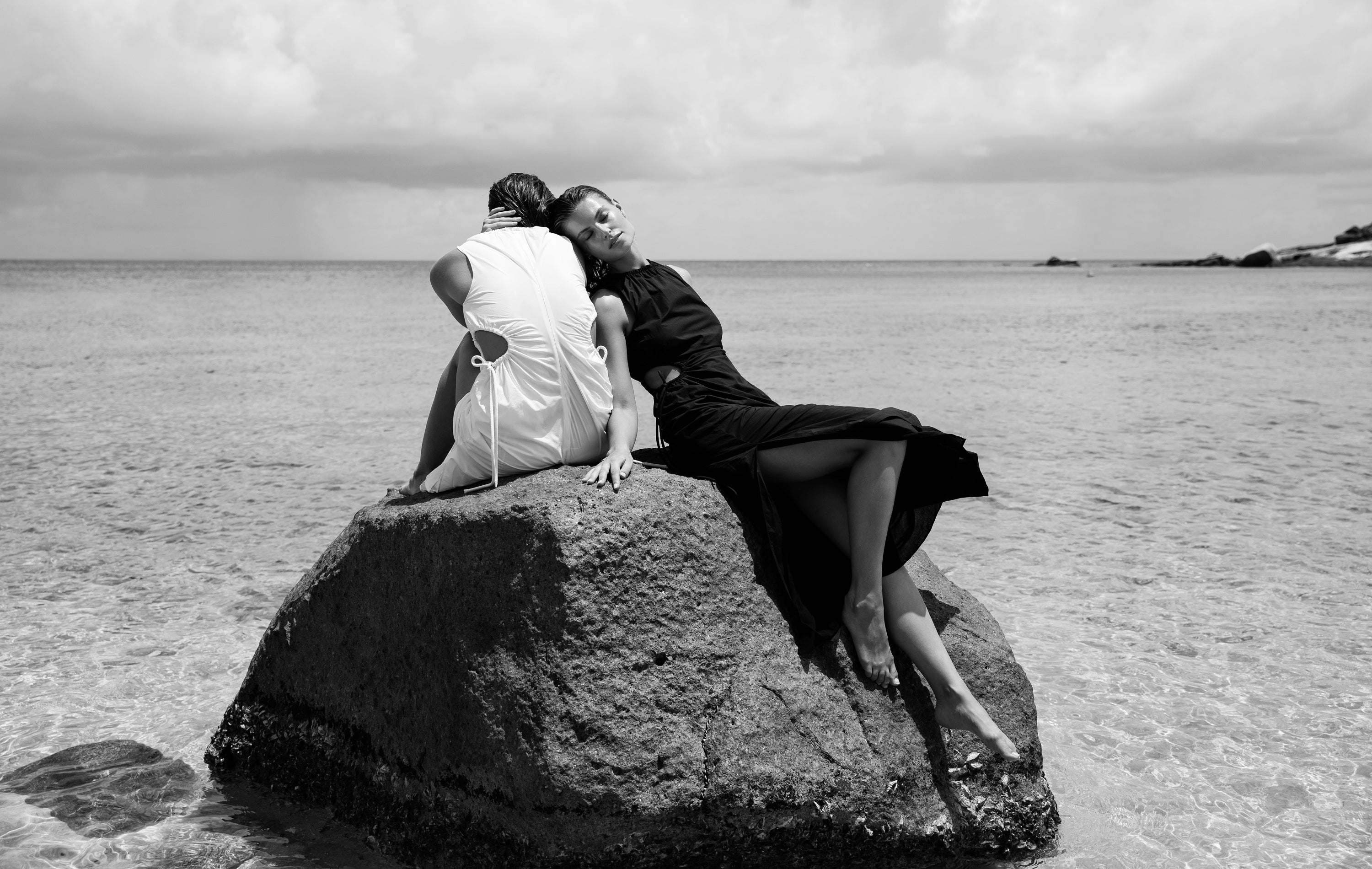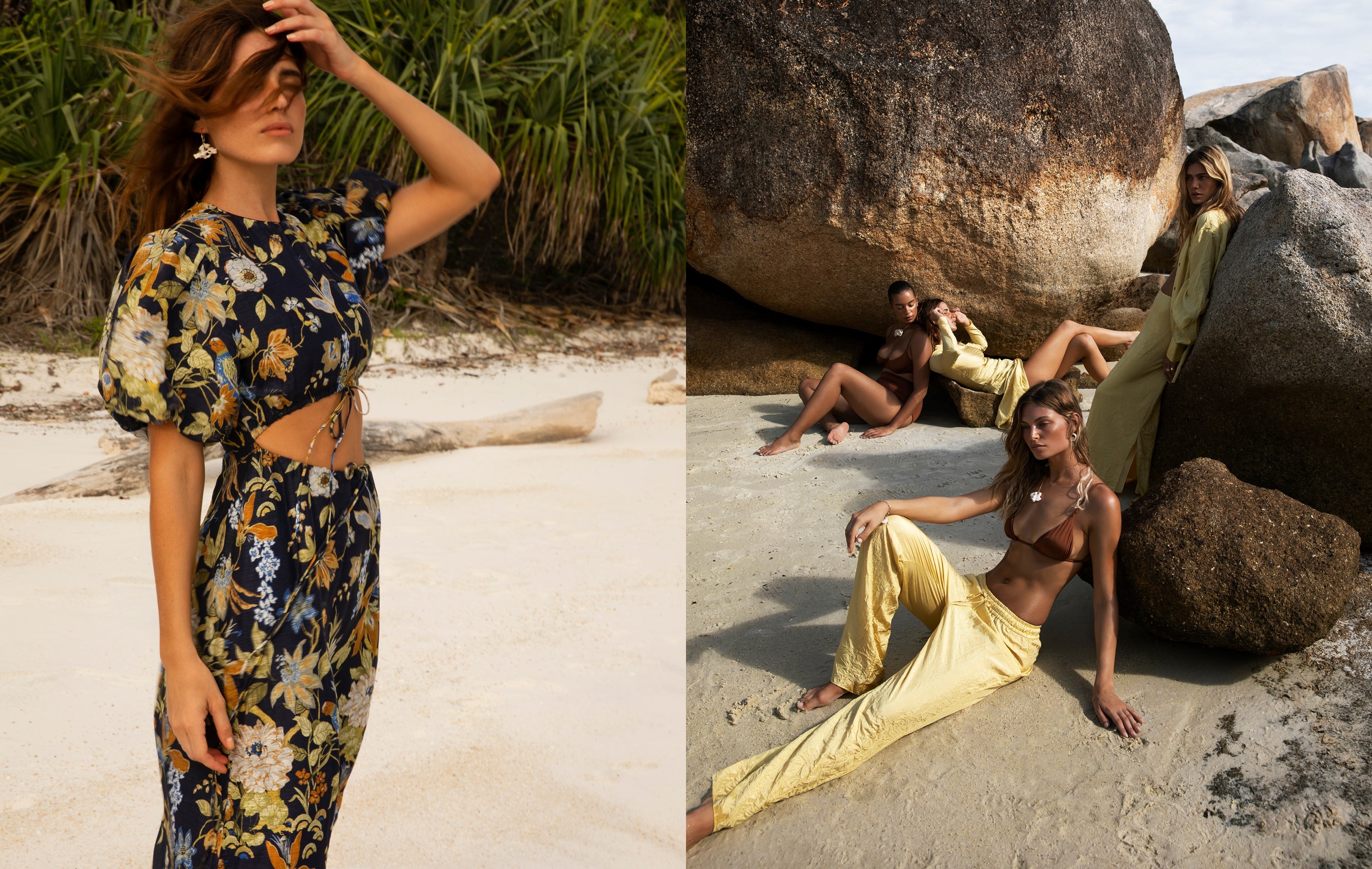 A short flight to paradise. SIR. muses Joanna, Tahnee, Shimma and Shenise move through crystal clear waters, discovering rock pools and natural formations to perch – connected to the land, and connected to each other – the SIR. sisterhood is ever present. New season florals, buttery tones of yellow, and rich chocolate hues mixed with new neutrals contrast with the idillic landscape of Australia’s, Lizard island – where time slows and the surroundings immerse you completely.