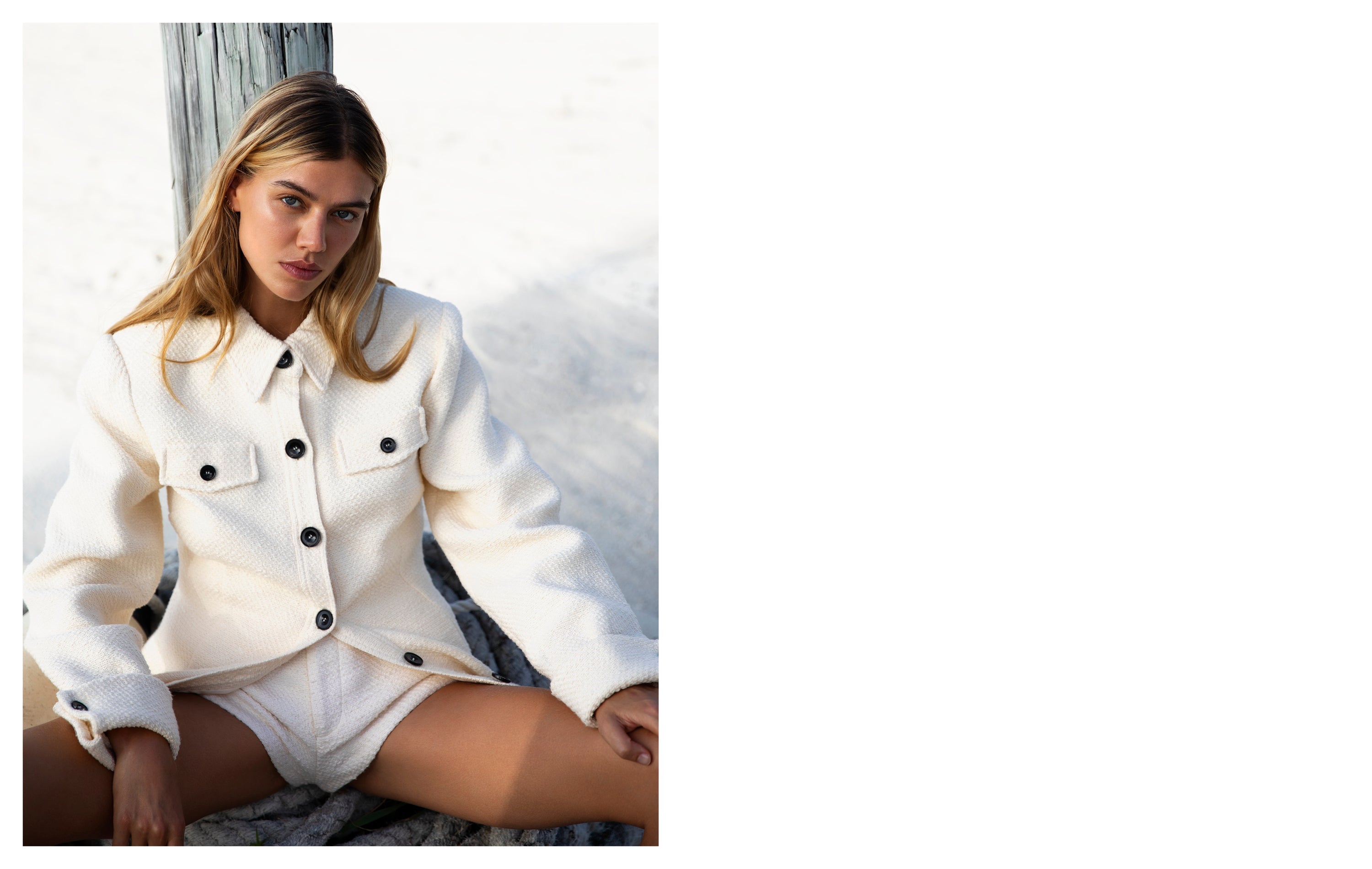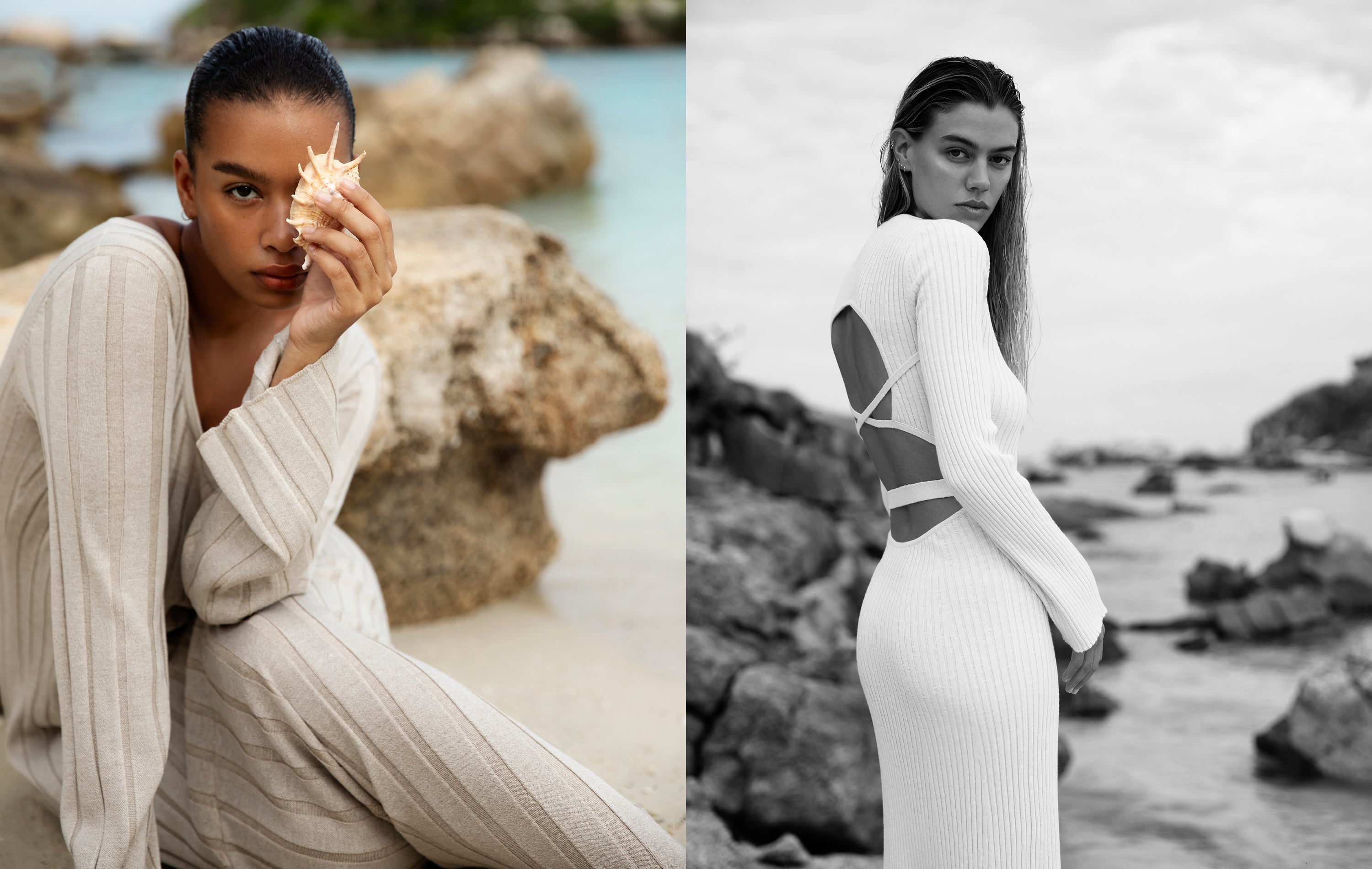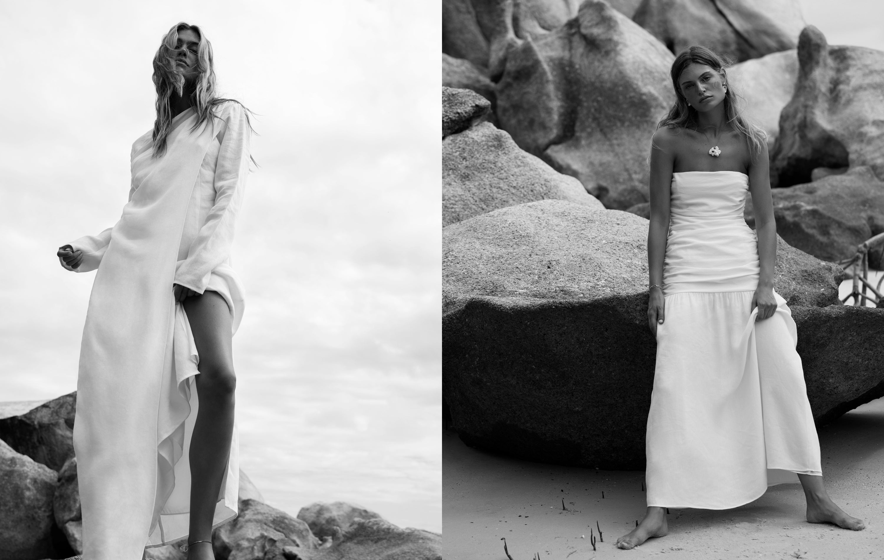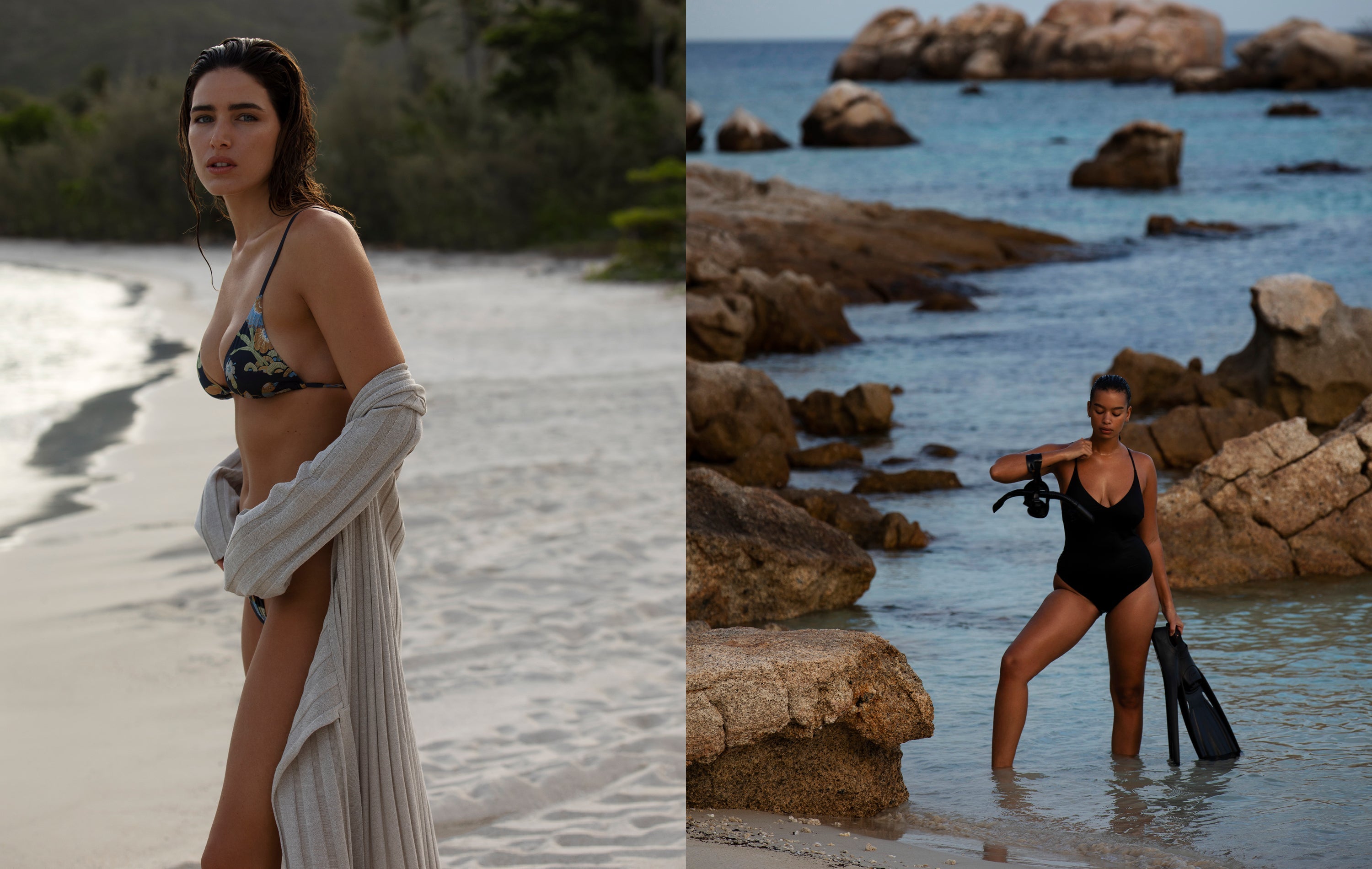 A short flight to paradise. SIR. muses Joanna, Tahnee, Shimma and Shenise move through crystal clear waters, discovering rock pools and natural formations to perch – connected to the land, and connected to each other – the SIR. sisterhood is ever present. New season florals, buttery tones of yellow, and rich chocolate hues mixed with new neutrals contrast with the idillic landscape of Australia’s, Lizard island – where time slows and the surroundings immerse you completely.