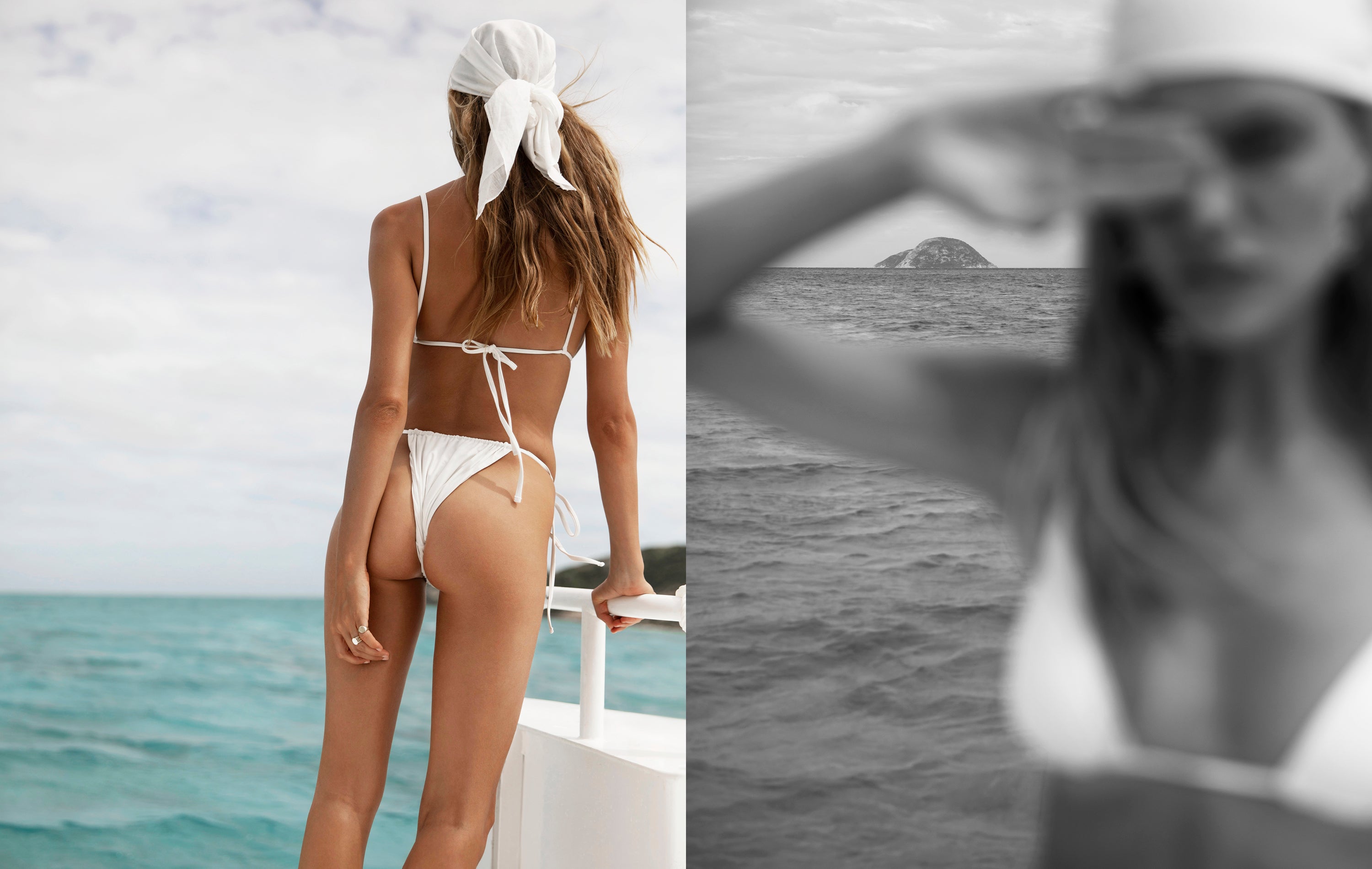 Joanna wears the Enid String Triangle Top and Louis String Brief.
