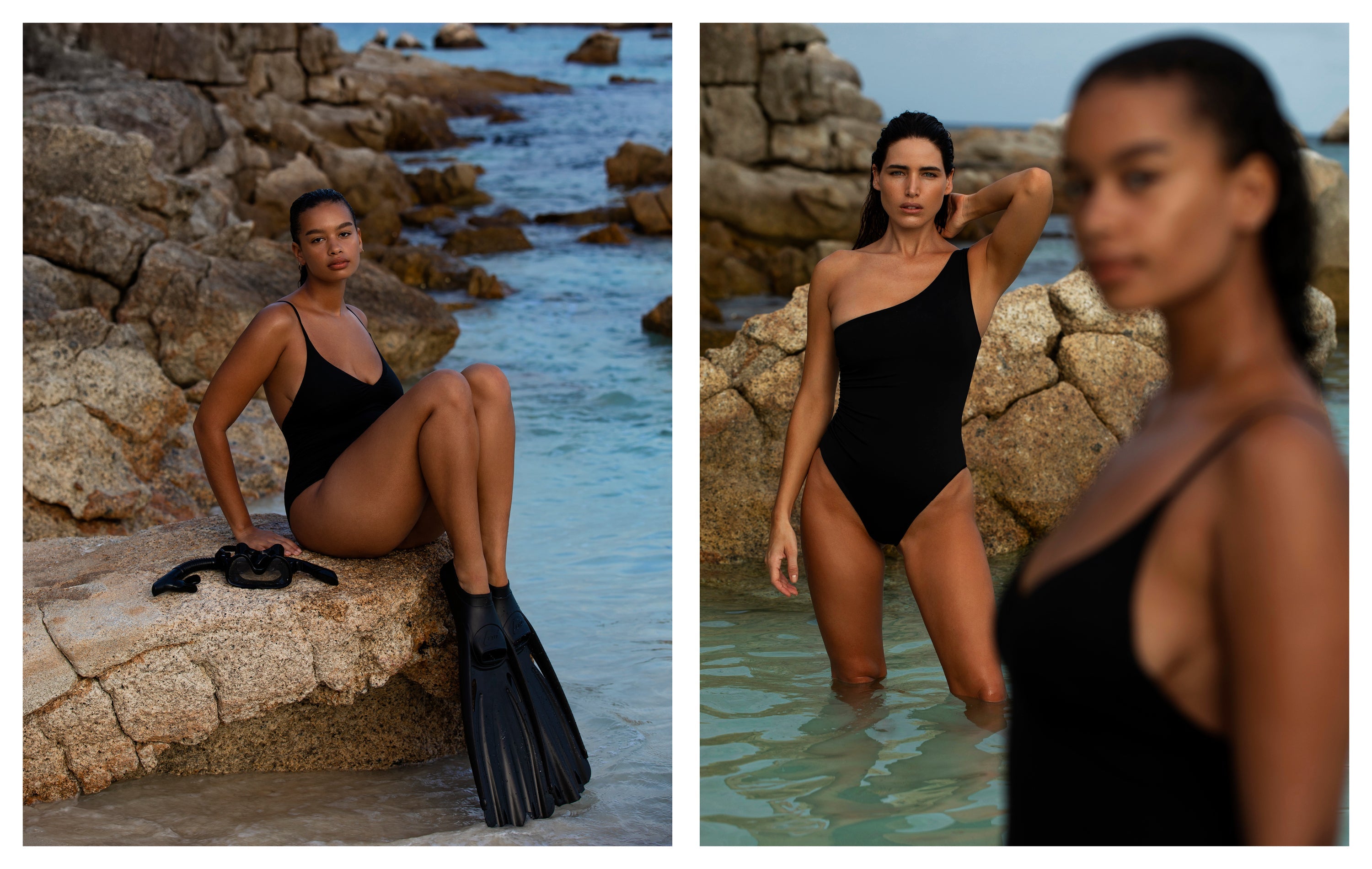 Shimma wears the Enid One Piece. Tahnee wears the Hendry One Shoulder One Piece.