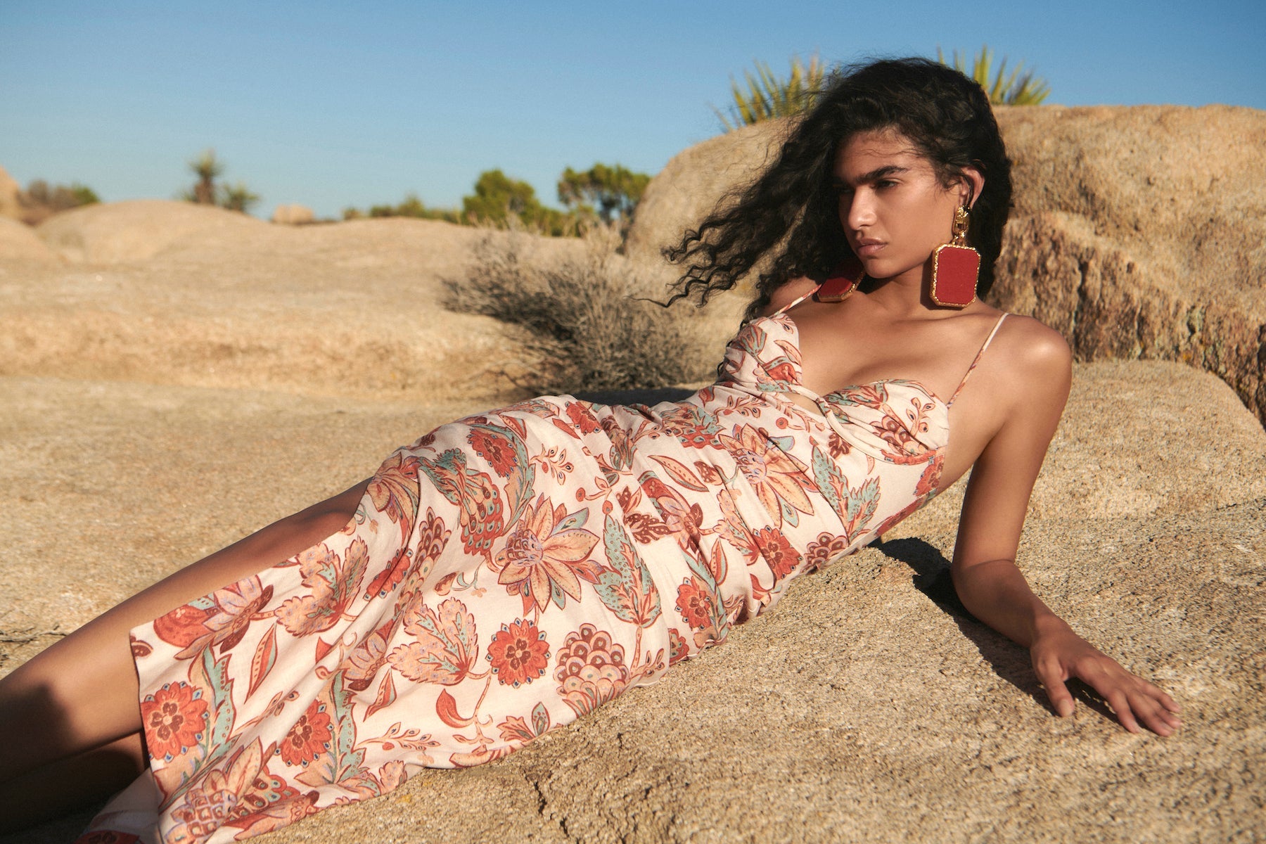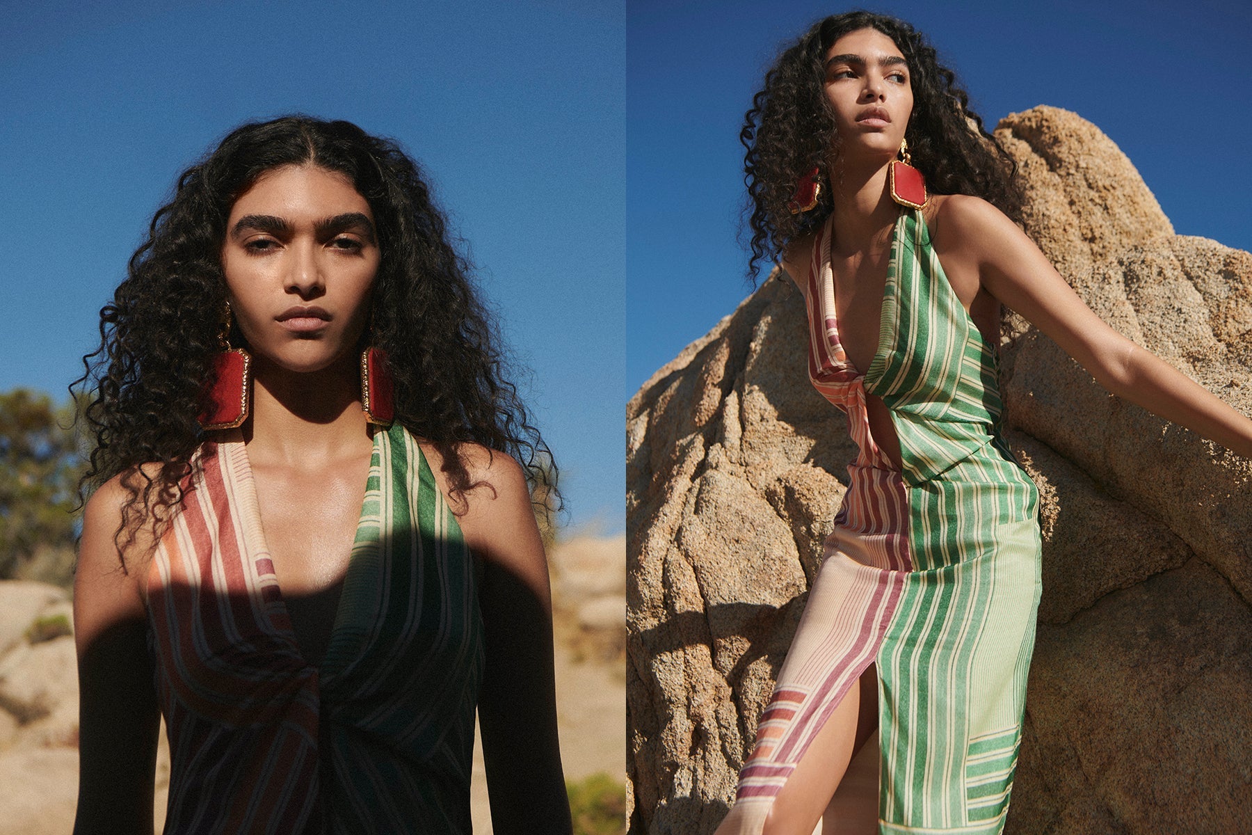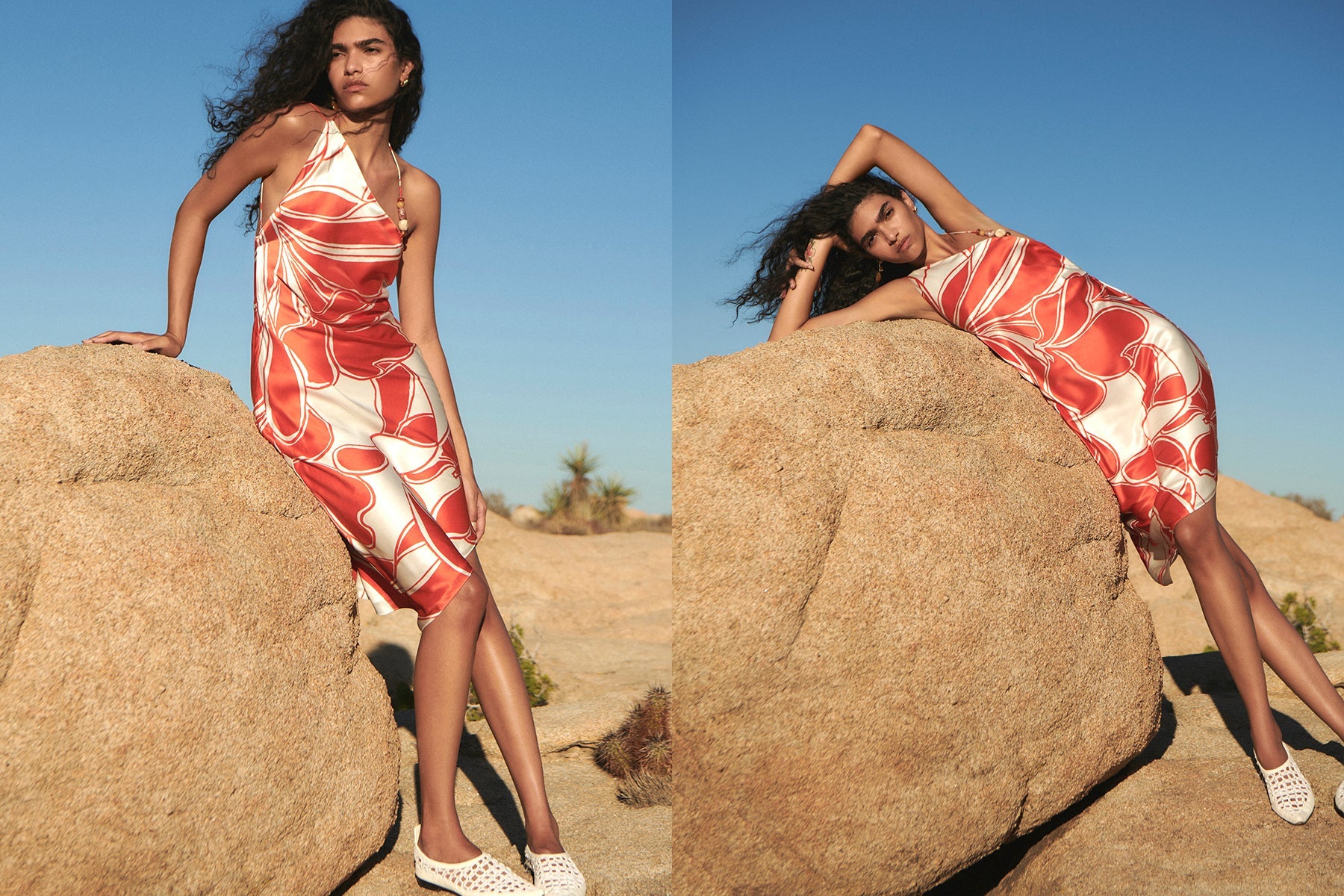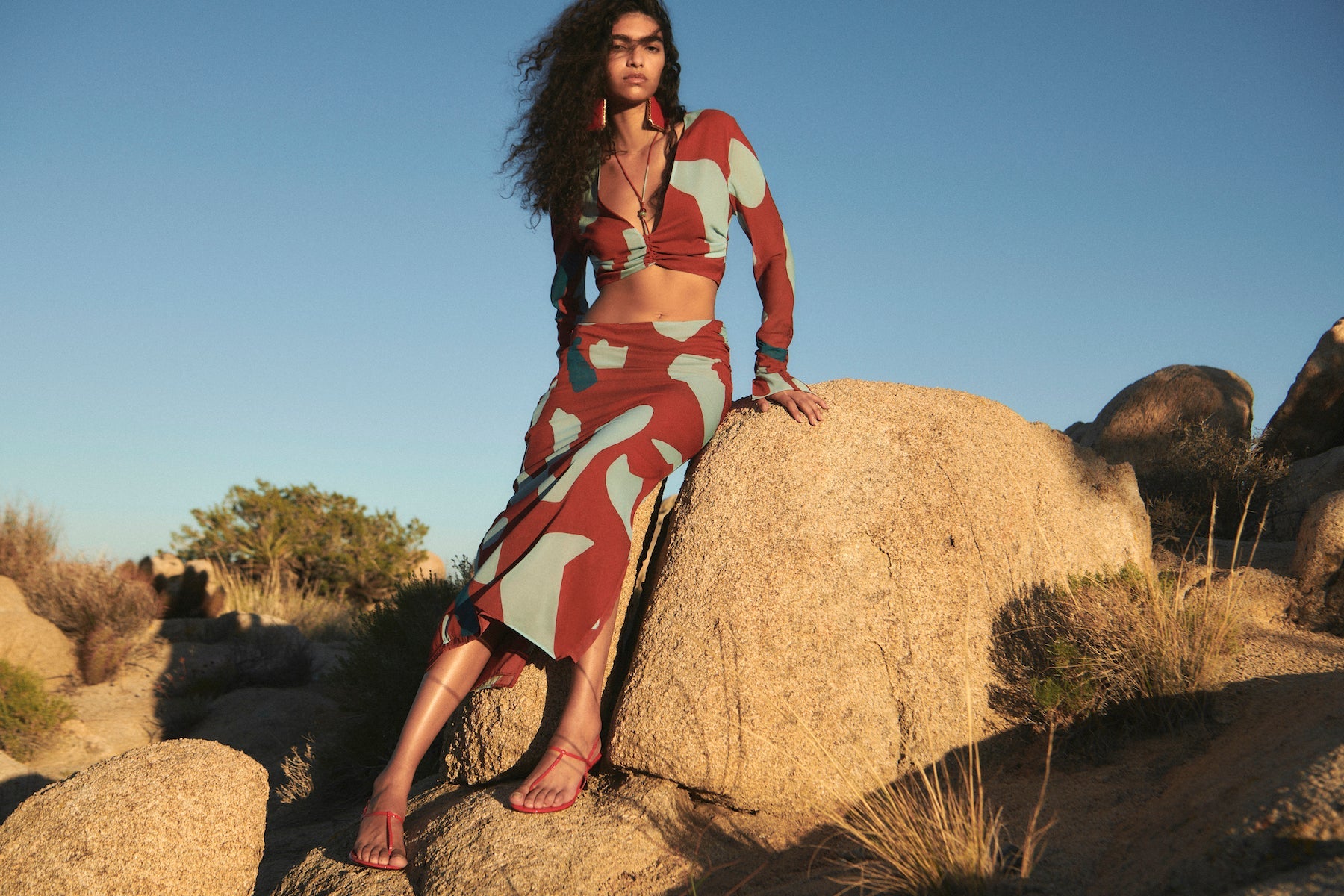 Step into a mirage, an otherworldly landscape that exists somewhere between a physical space and the unknown. Resort ‘24 draws on the beauty of the natural world and the sense of tranquillity that comes from being in nature. Elements call to organic forms, met with prints that mimic the undulating waves of sand dunes and the hazy oasis on the horizon. Silhouettes shadowed by the sun in a palette found from the sky to the sand across are recast in quintessential SIR. style – reimagined to compose a collection reinforcing the feeling of an eternal summer.