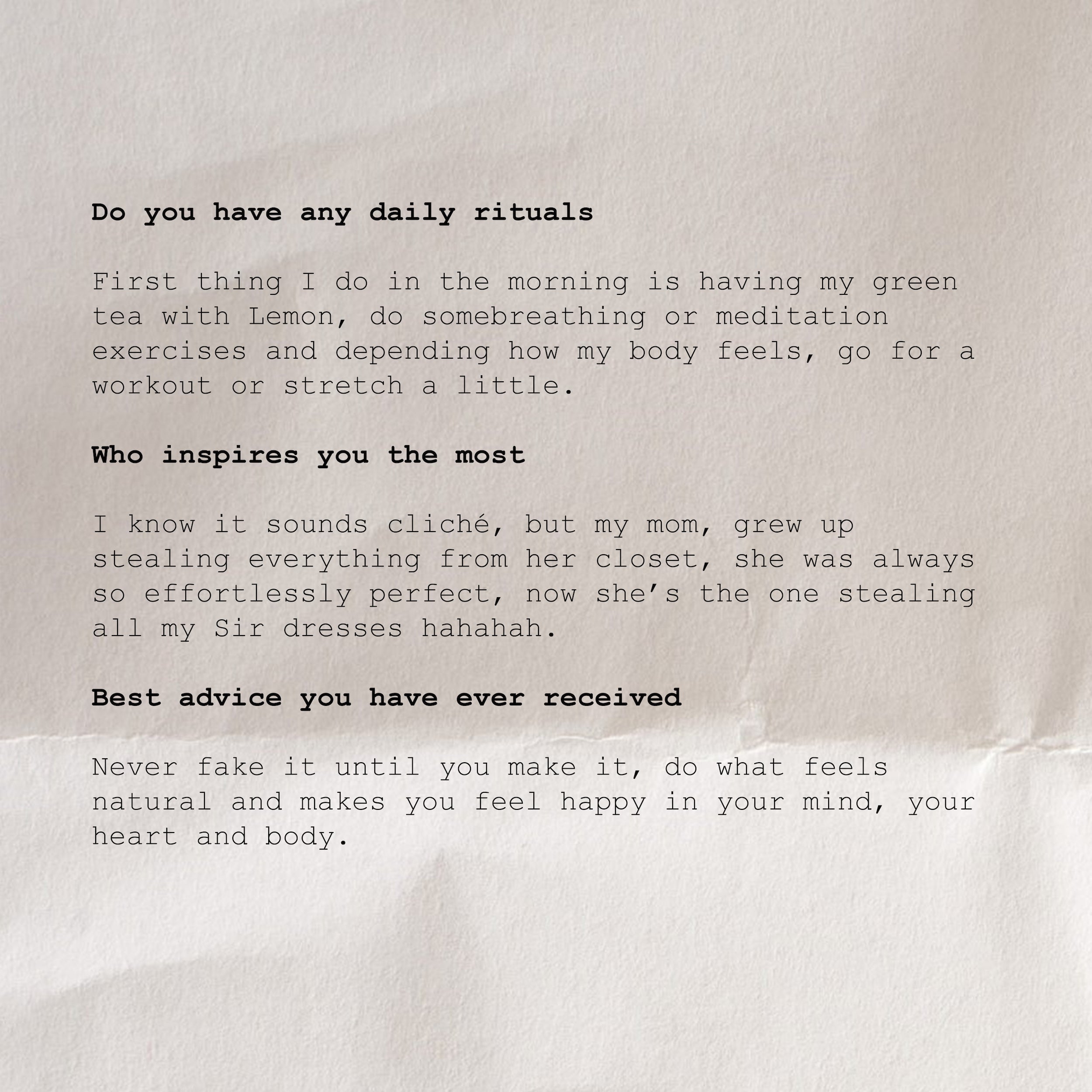 Here we chat to Belen about her biggest inspirations and she shares with us the best advice she has ever received.