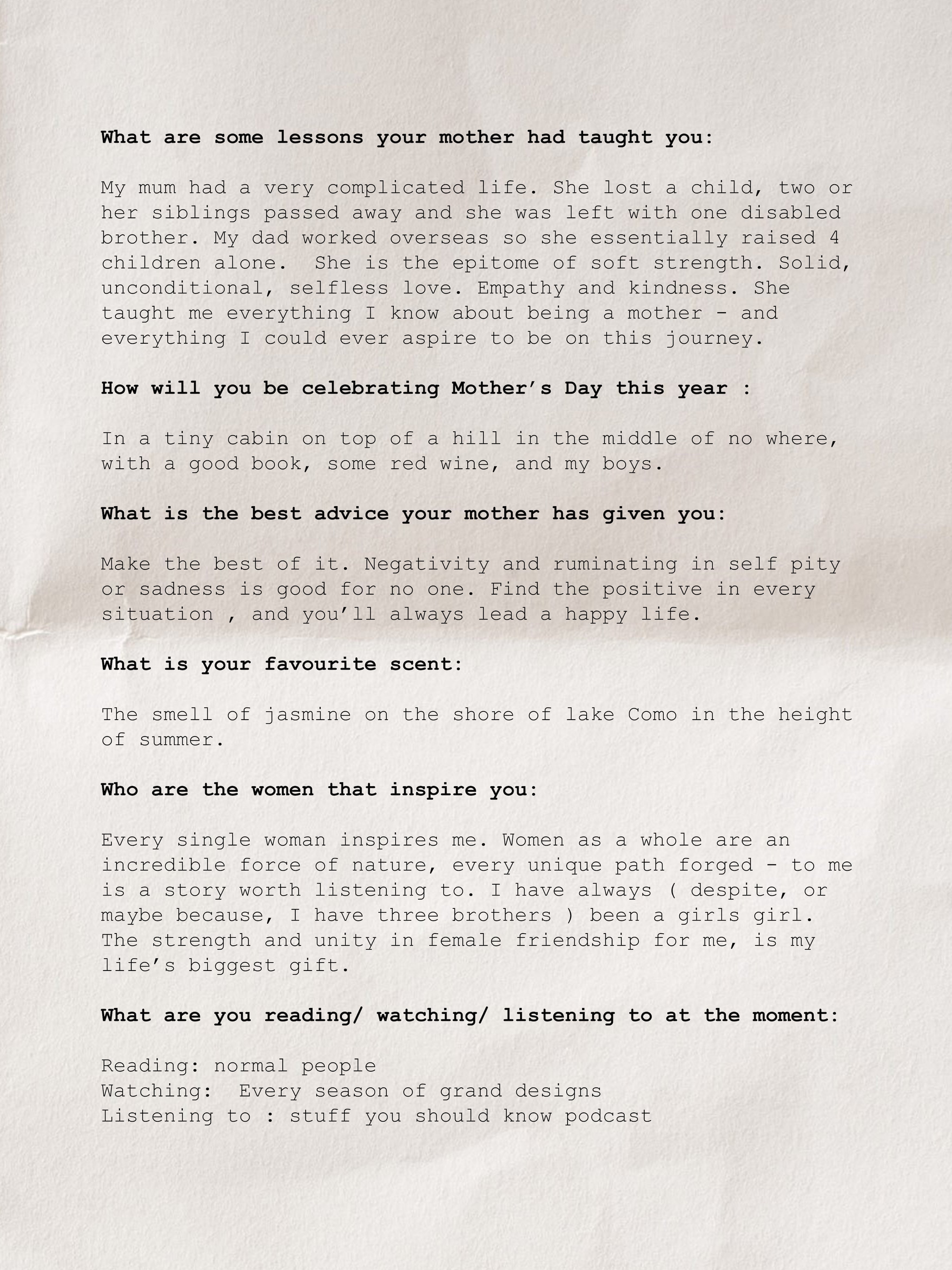 With the birth of her first child Fox, Emily shares with us how she is spending Mother’s Day this year and pearls of wisdom from her own mother.