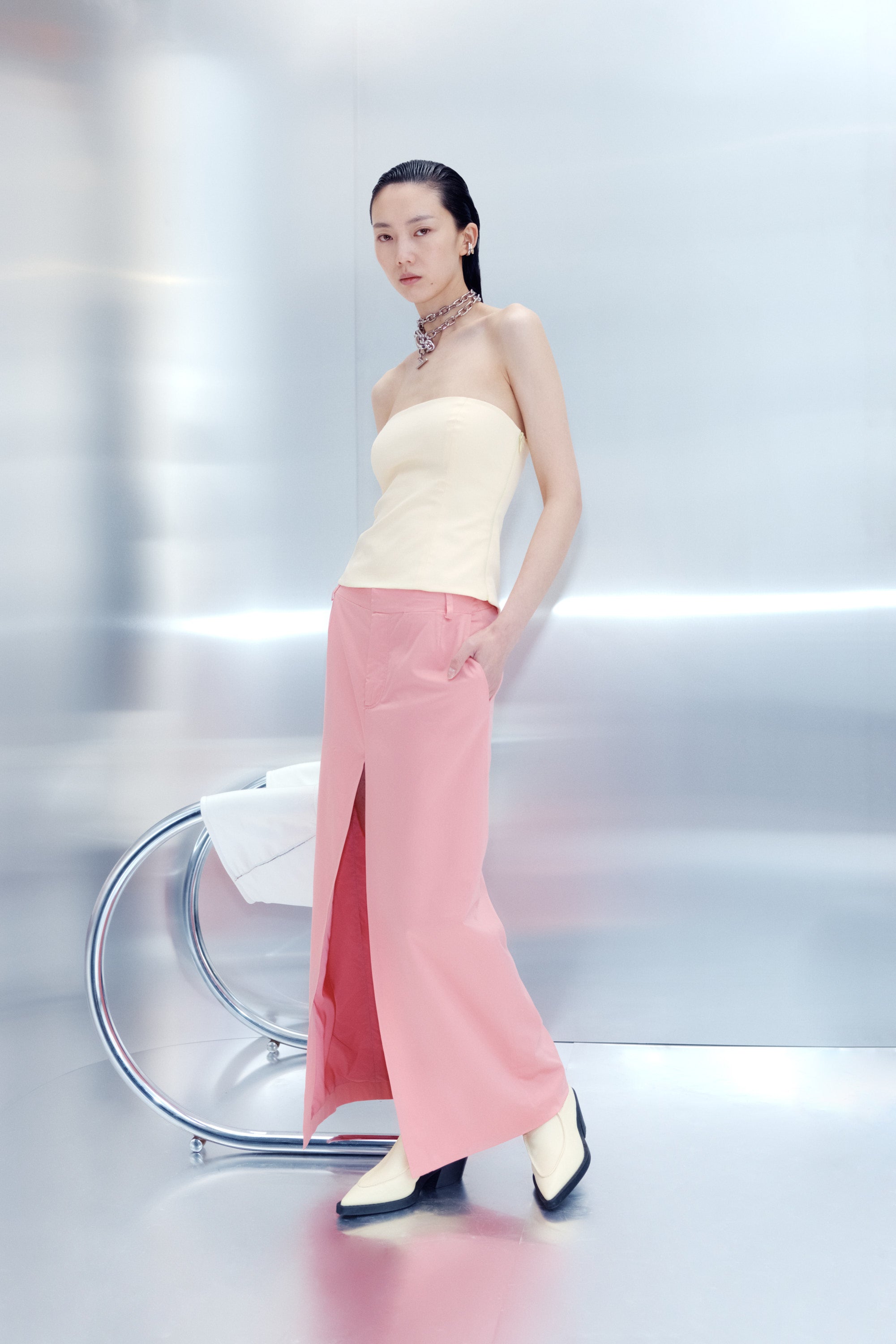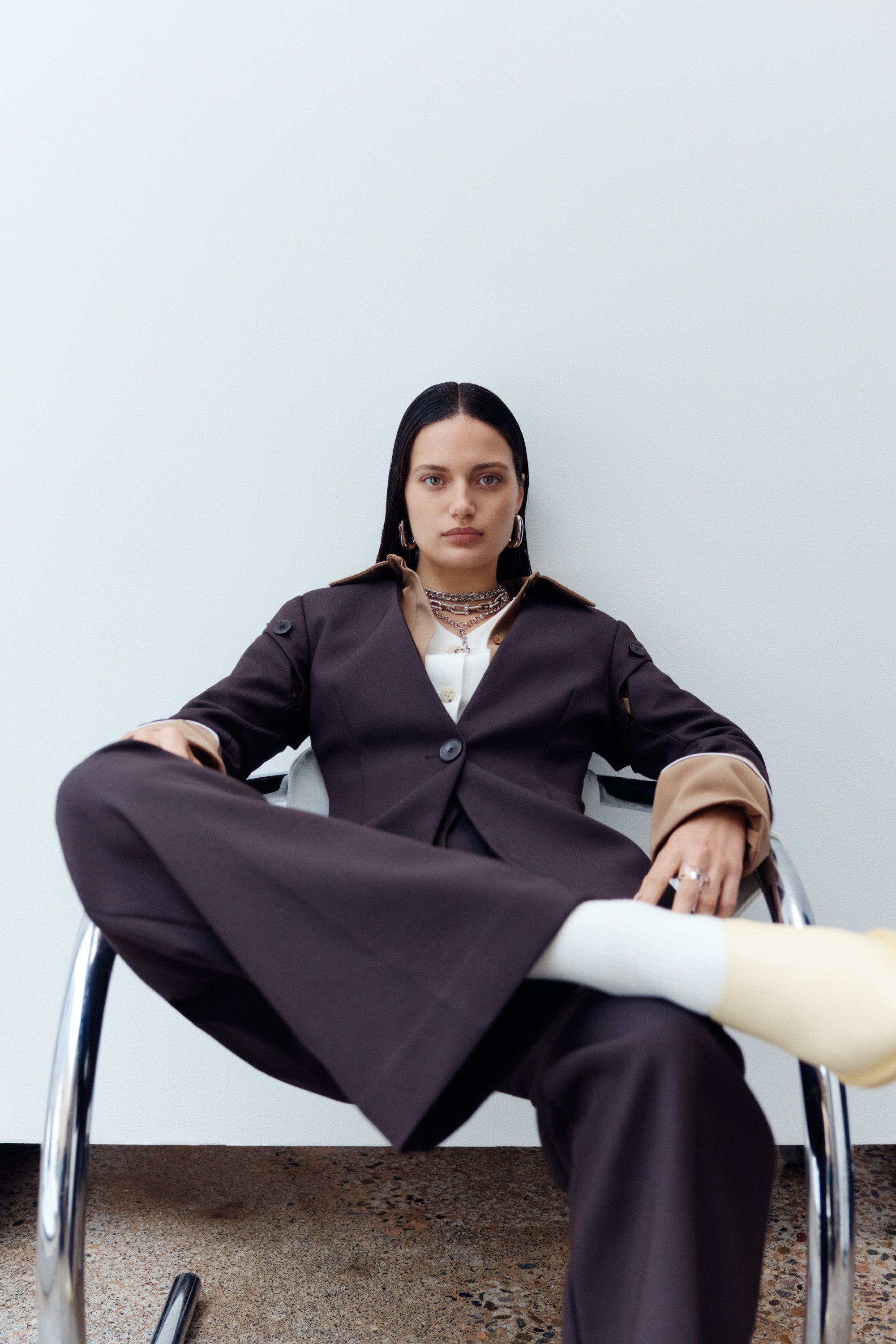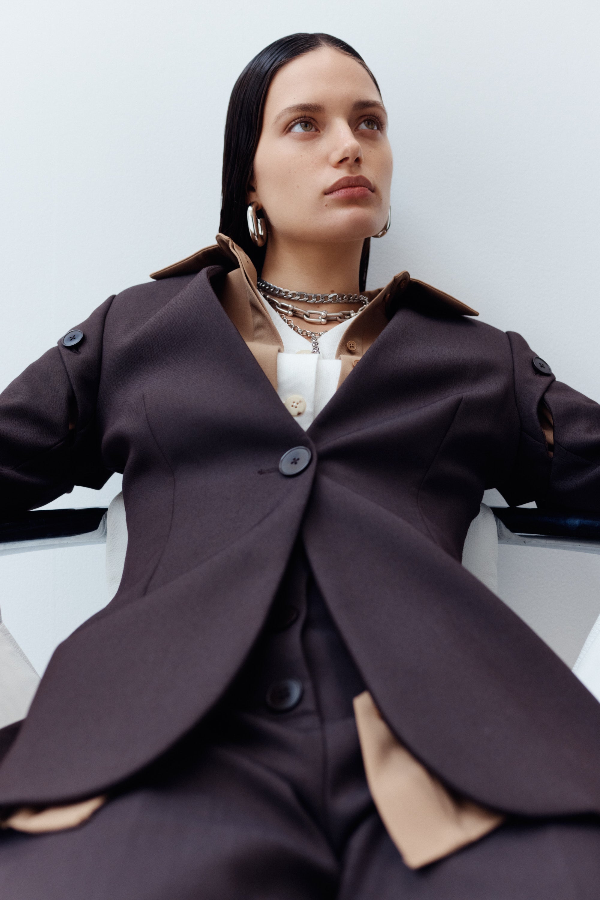 New season tailoring, structured layers and deconstructed details create space for pastel hues to pop amongst the neutral tones that underpin the palette. Offset buttons, chrome accents and enveloped folds echo a sense of unexpected movement, offering the final finishing touch.