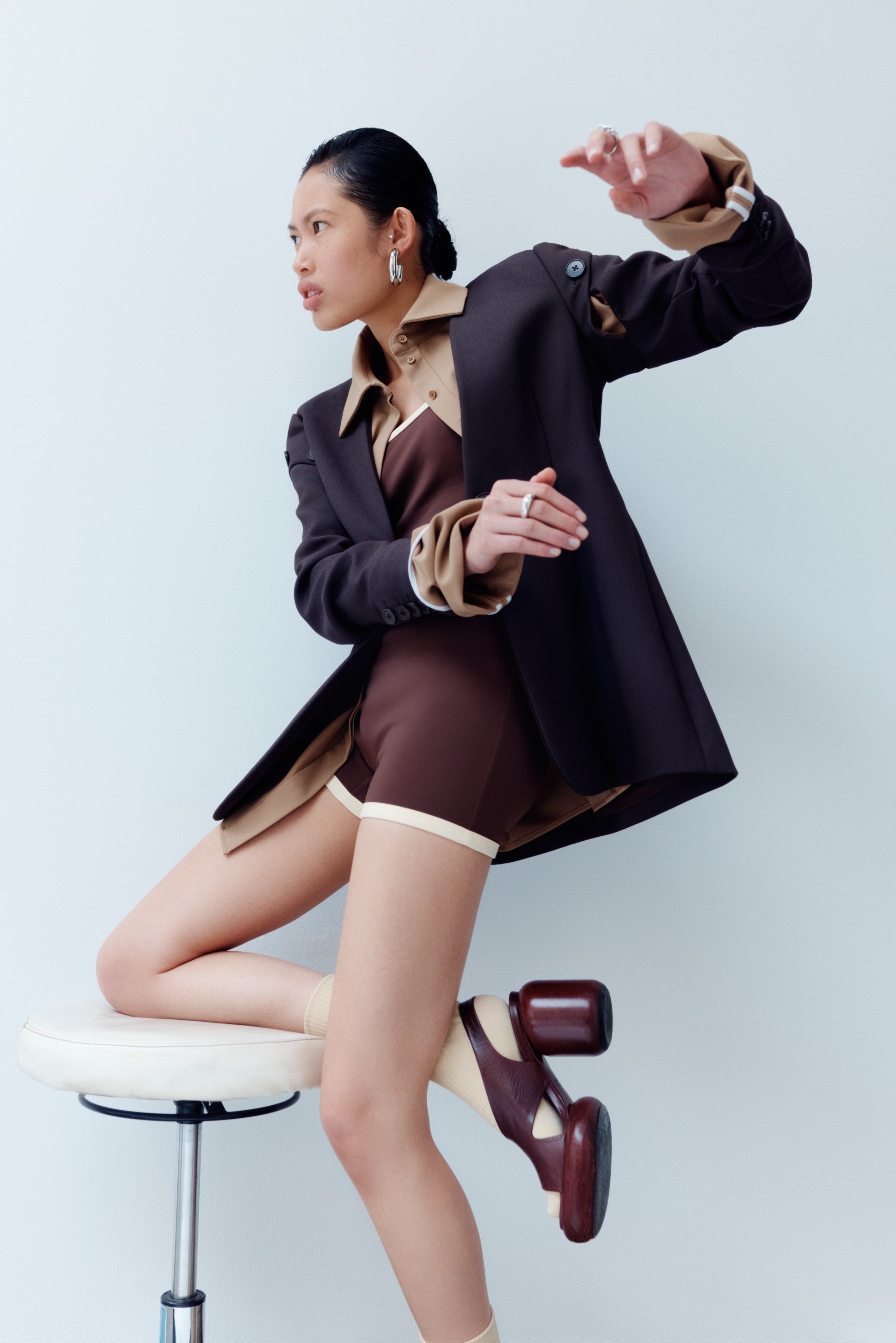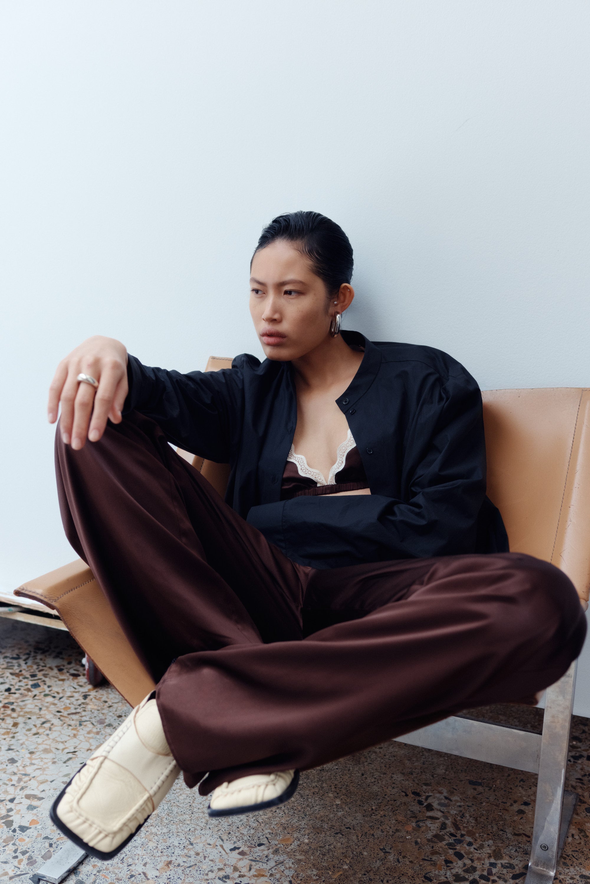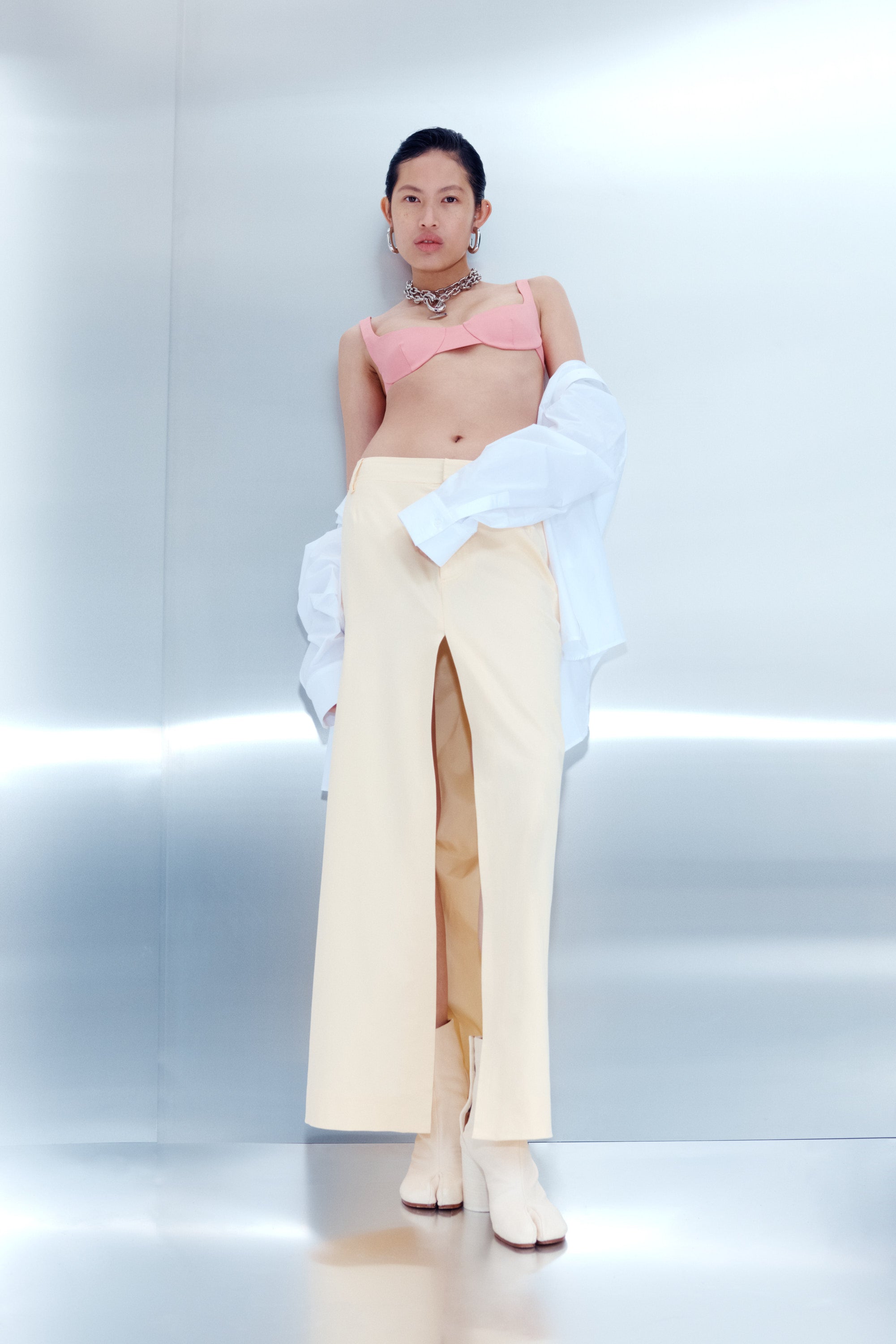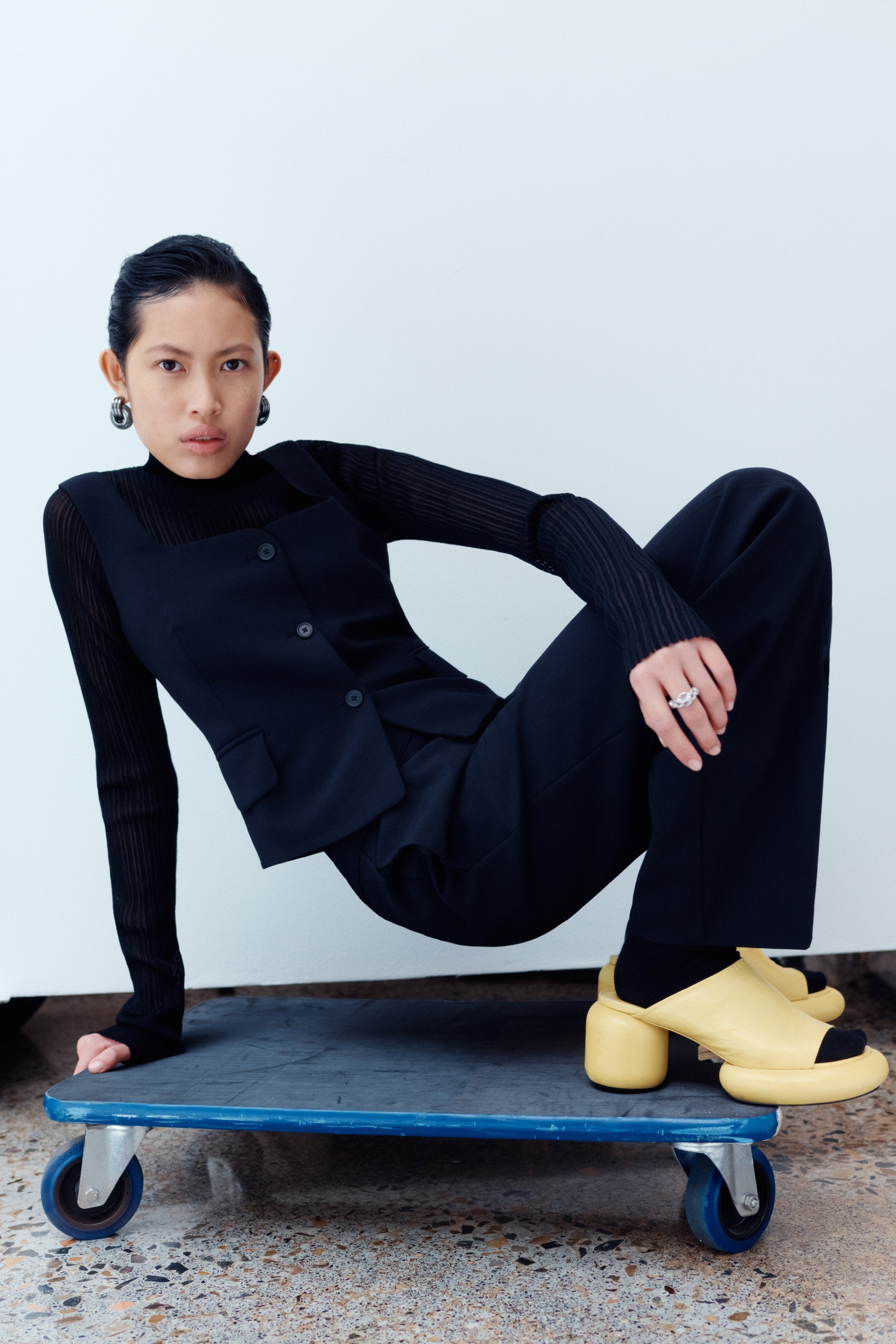 New season tailoring, structured layers and deconstructed details create space for pastel hues to pop amongst the neutral tones that underpin the palette. Offset buttons, chrome accents and enveloped folds echo a sense of unexpected movement, offering the final finishing touch.