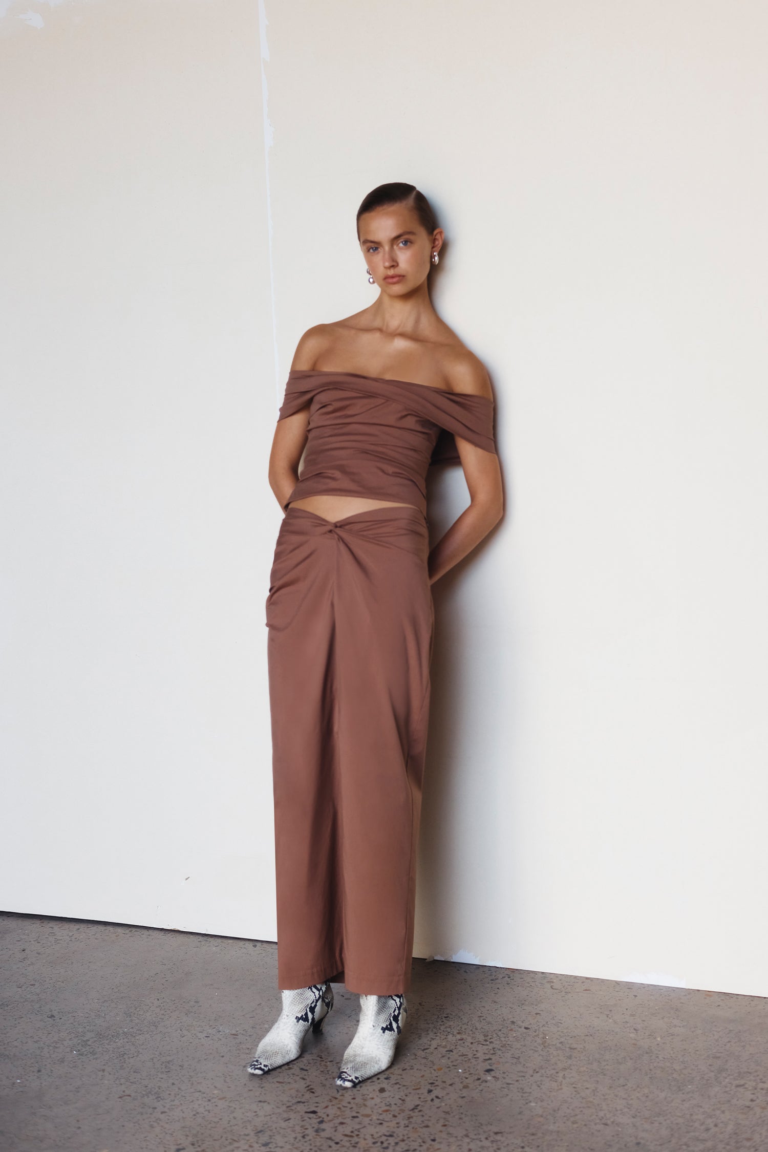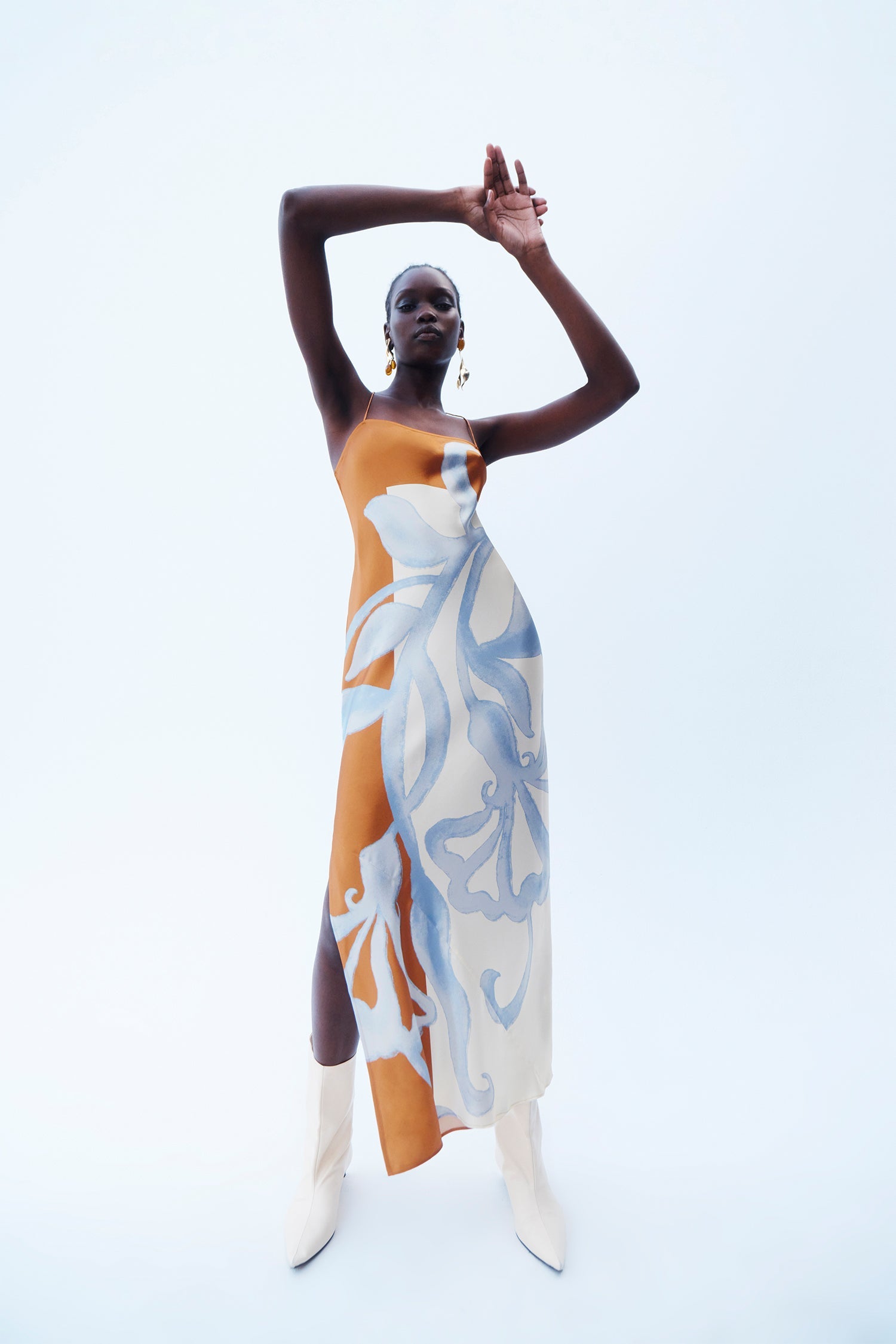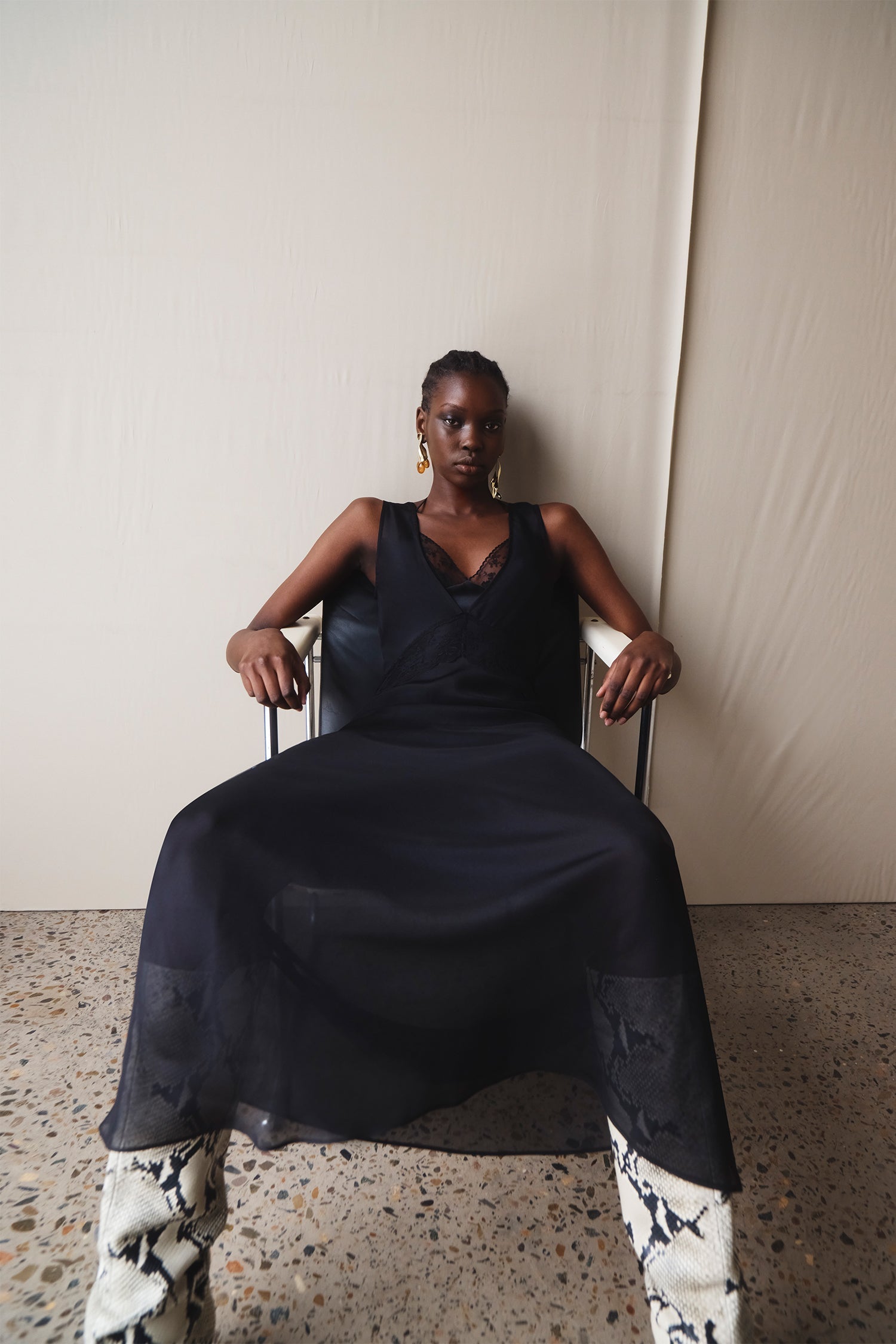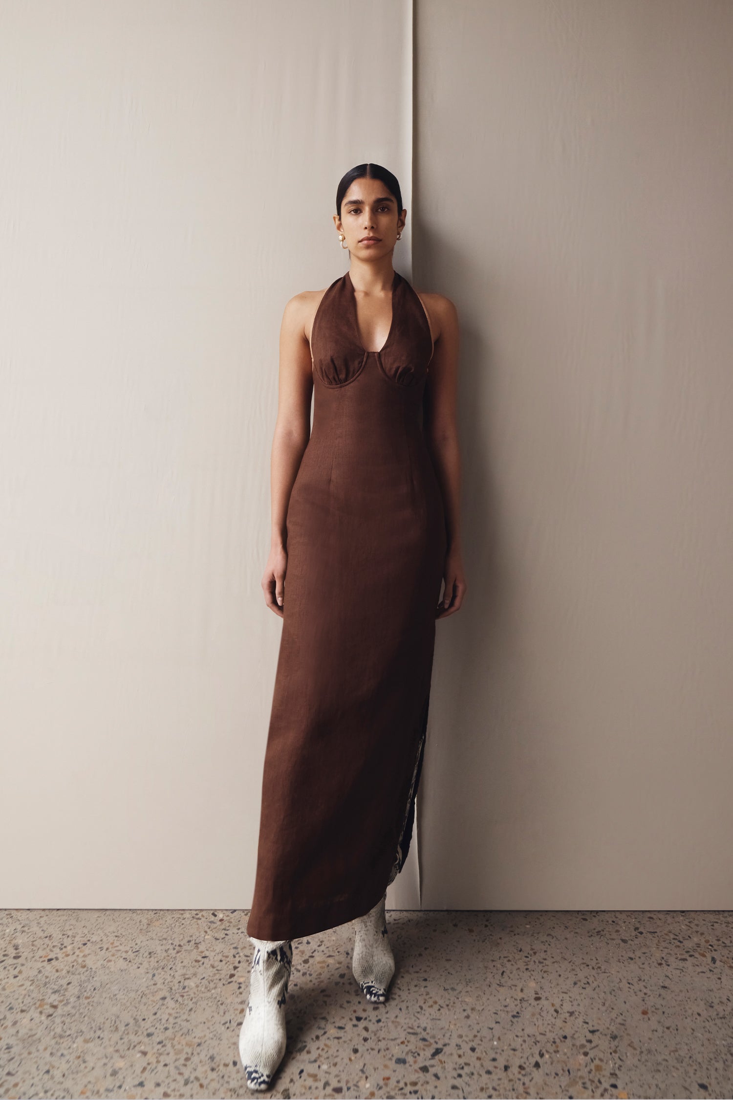 Draping techniques are used to highlight form fitting shapes, an ode to renaissance sculptures. Compact knit stories with stacked beads bring an air of movement, while mesh basics return in a new season palette expanding the brand's repertoire of elevated basics. Classic SIR. tailoring is deconstructed from traditional silhouettes and modernised with tonal hardware.