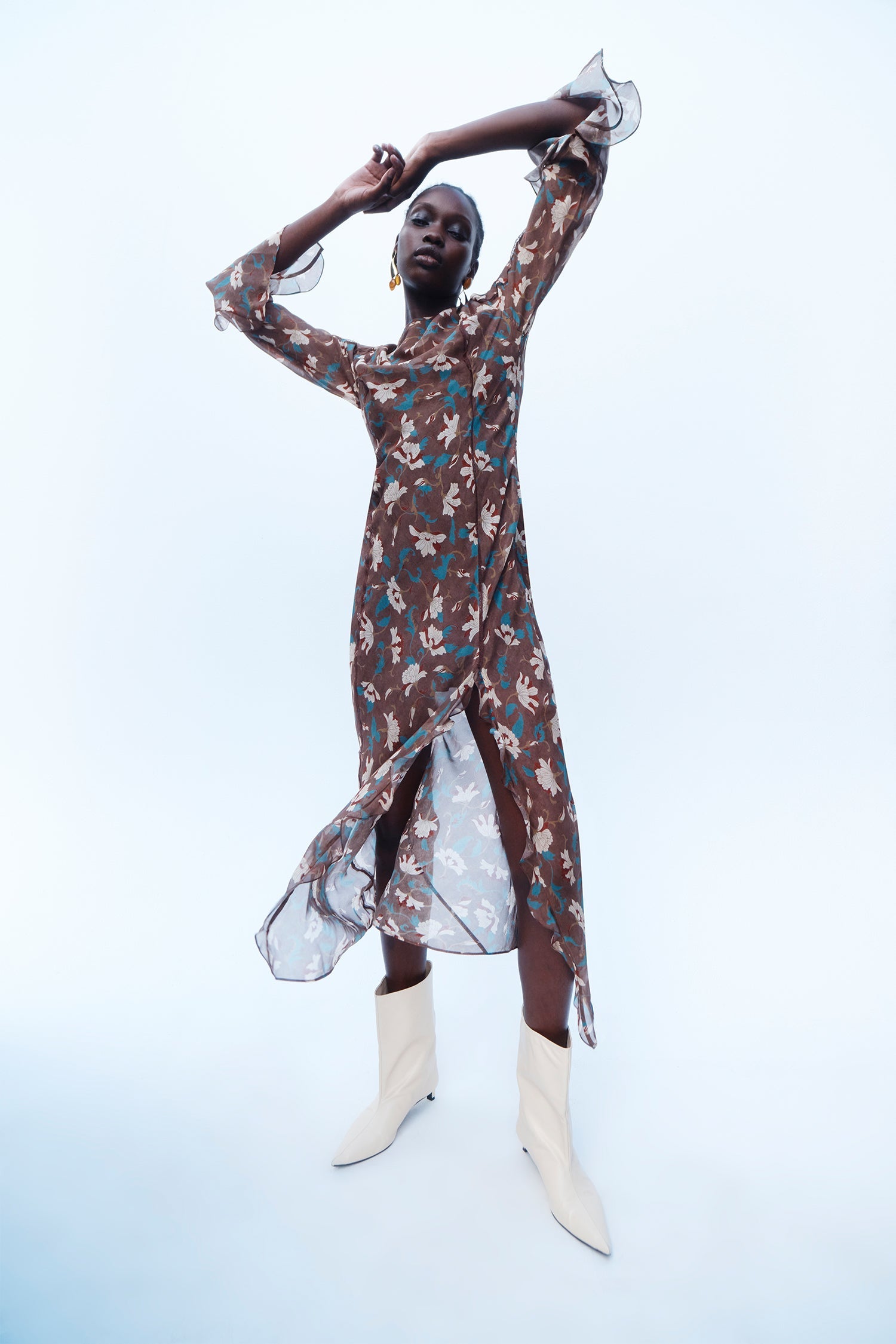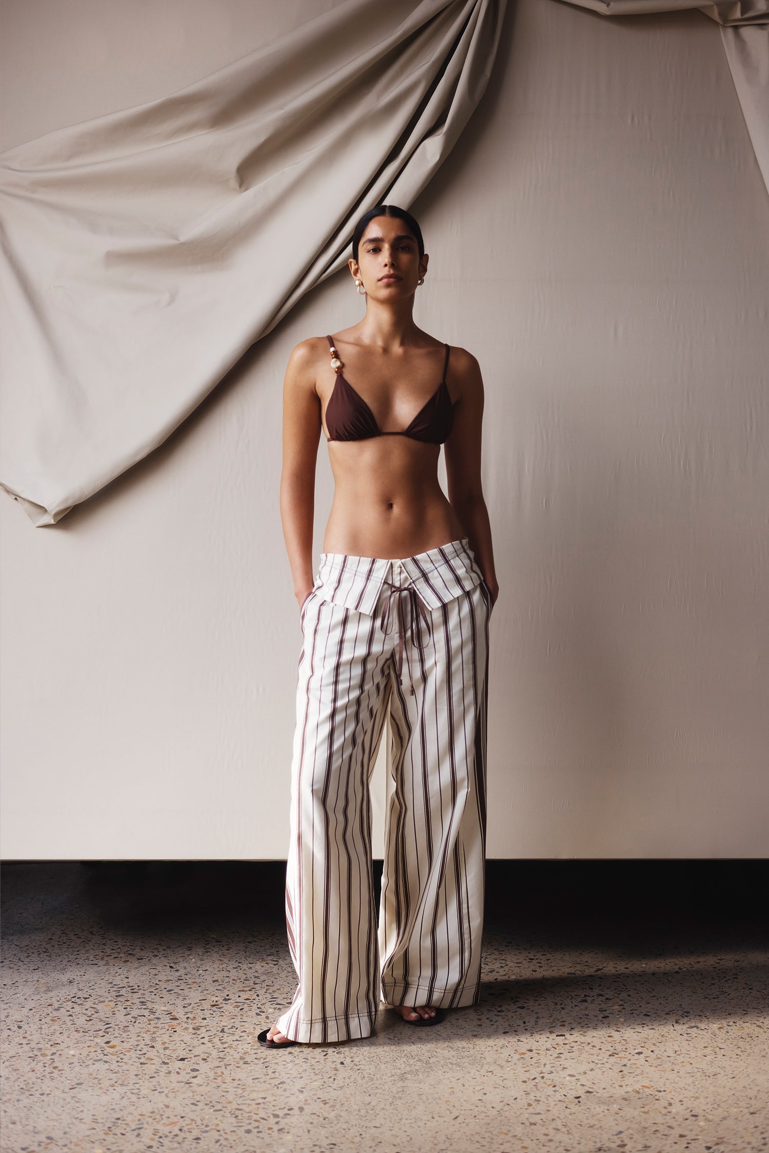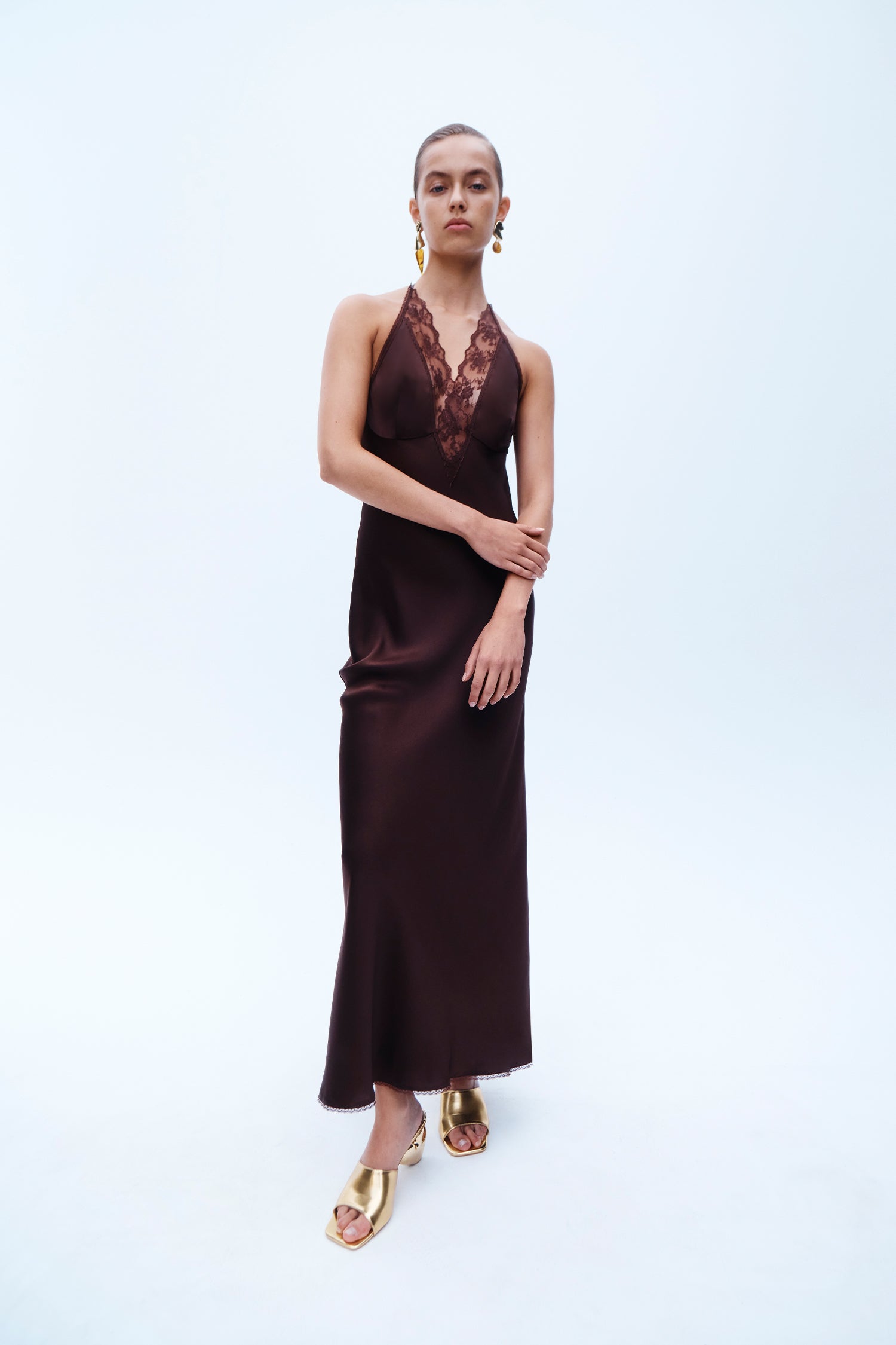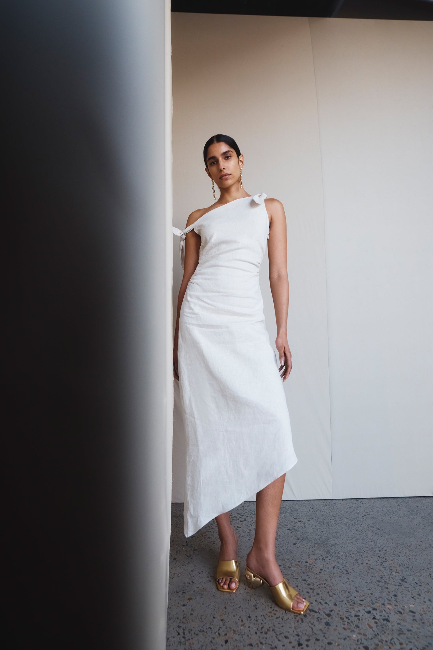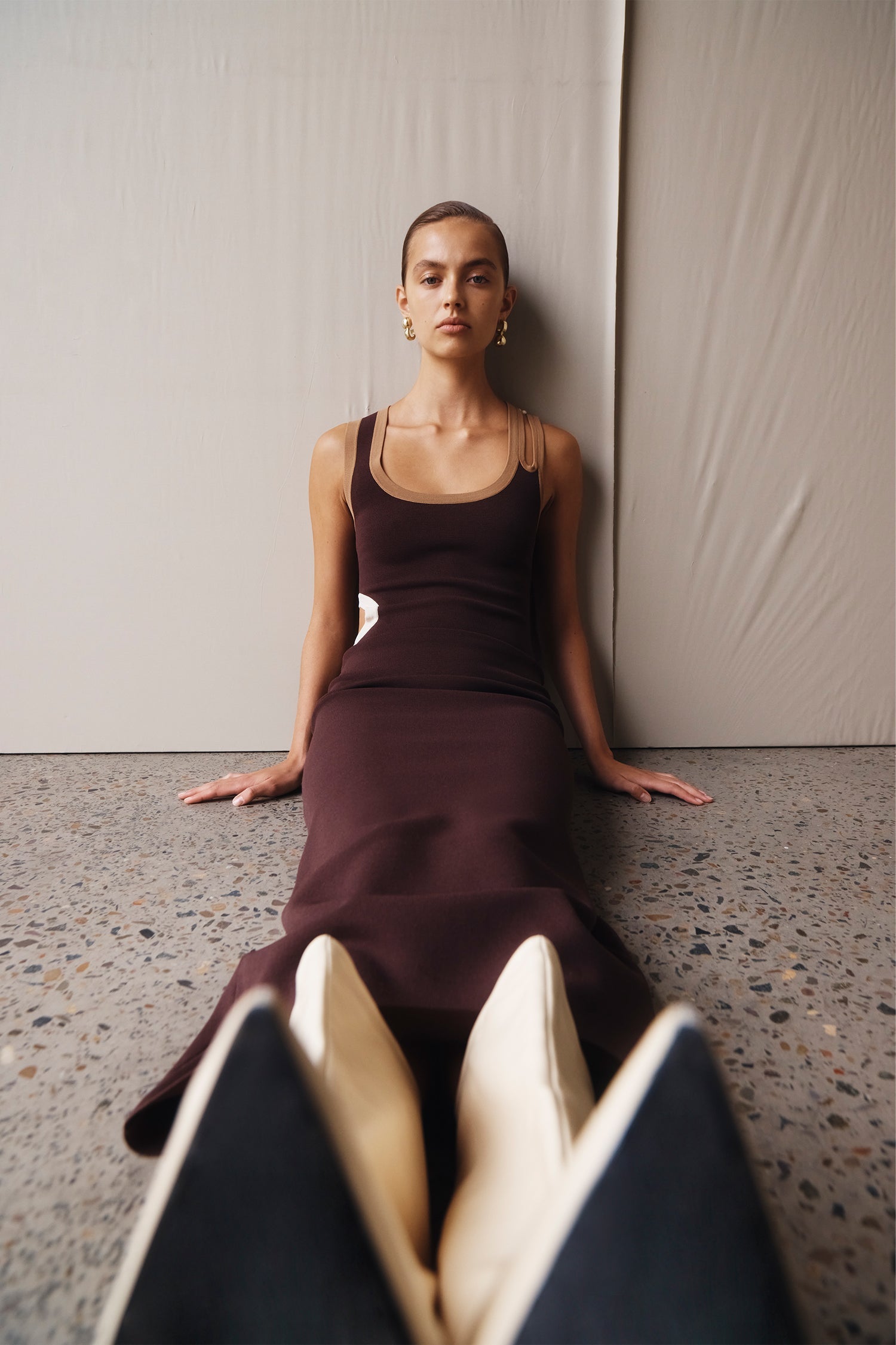 Draping techniques are used to highlight form fitting shapes, an ode to renaissance sculptures. Compact knit stories with stacked beads bring an air of movement, while mesh basics return in a new season palette expanding the brand's repertoire of elevated basics. Classic SIR. tailoring is deconstructed from traditional silhouettes and modernised with tonal hardware.