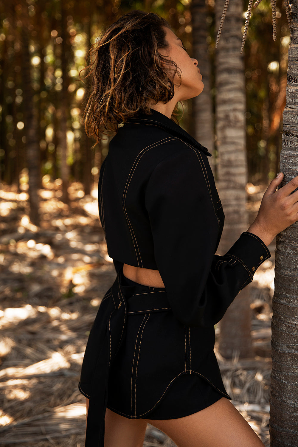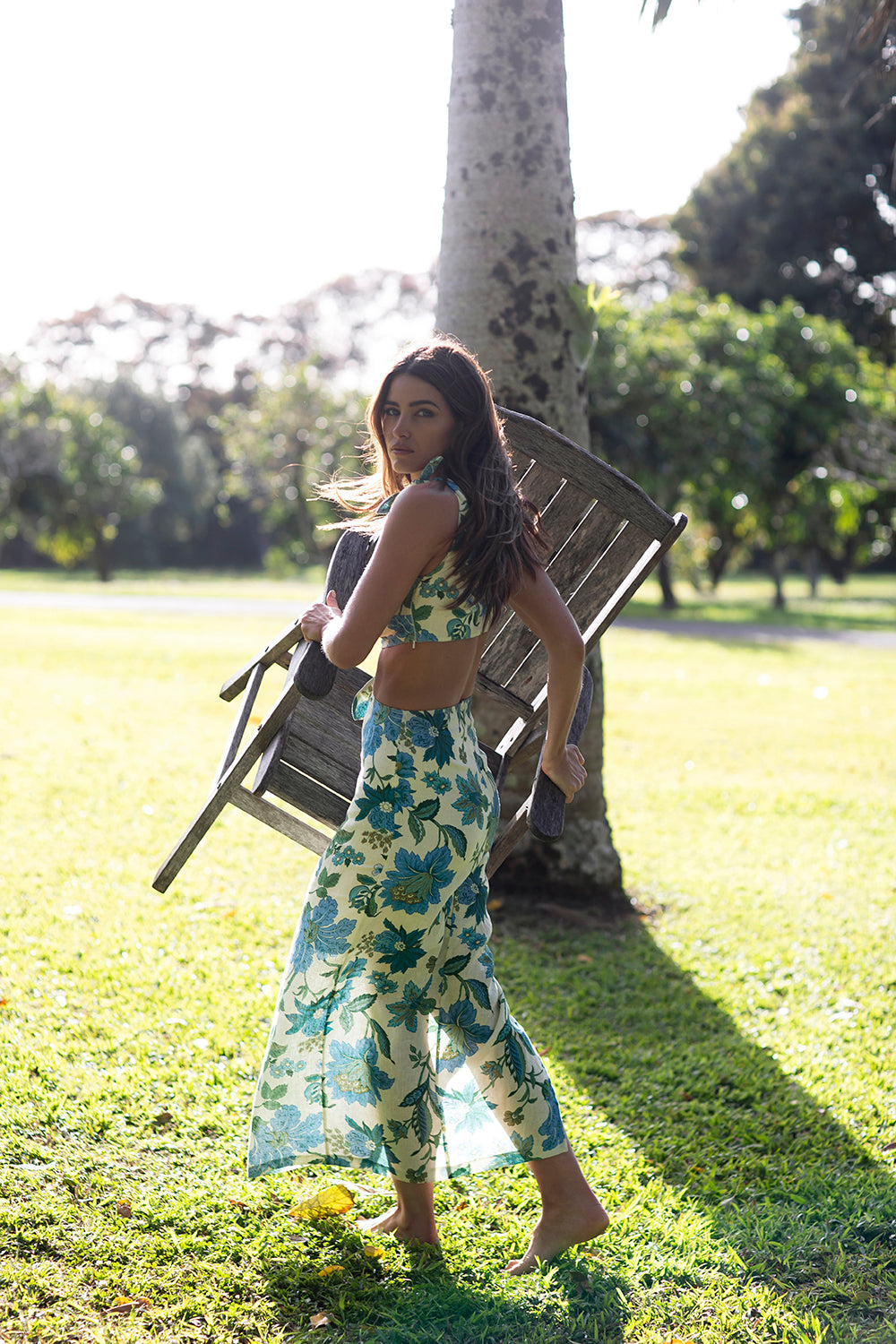 Linnea wears our Anja tucked bralette and Anja midi skirt.