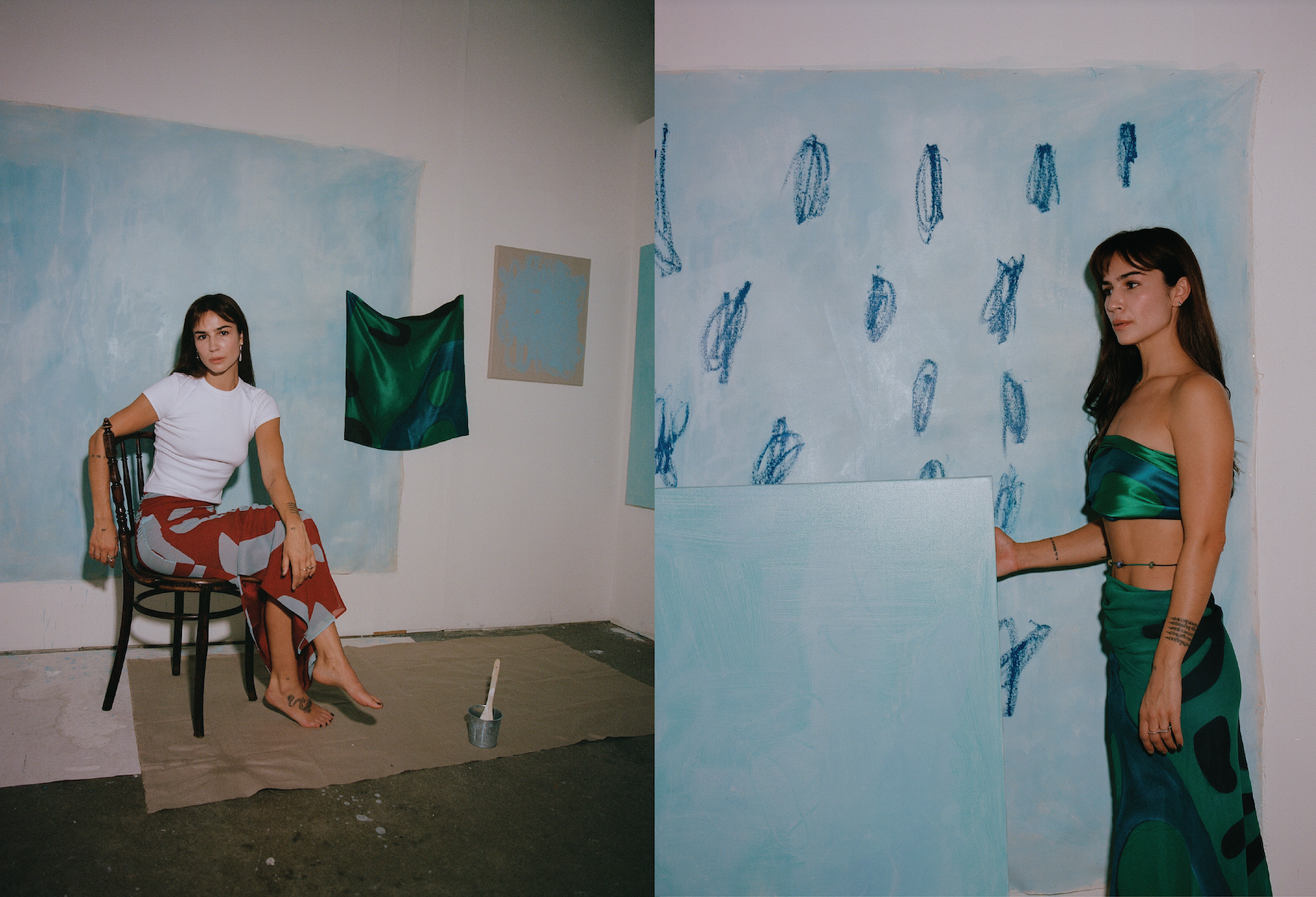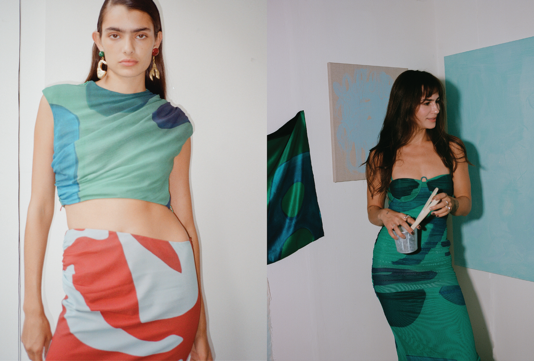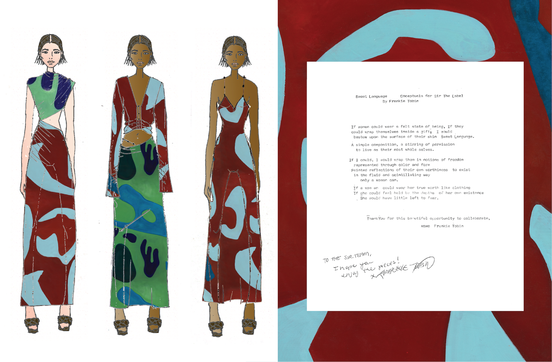 Resort '24 collection, Reflexiòn, welcomes an artistic collaboration with multidisciplinary Artist, Frankie Tobin. Formed through the concept of a simple composition, a stirring permission to live as our most whole selves. A notion explored through organic shapes painted exclusively for SIR., which have been cast across swim and ready-to-wear pieces and ignited our first SIR. jewellery collection (coming soon)