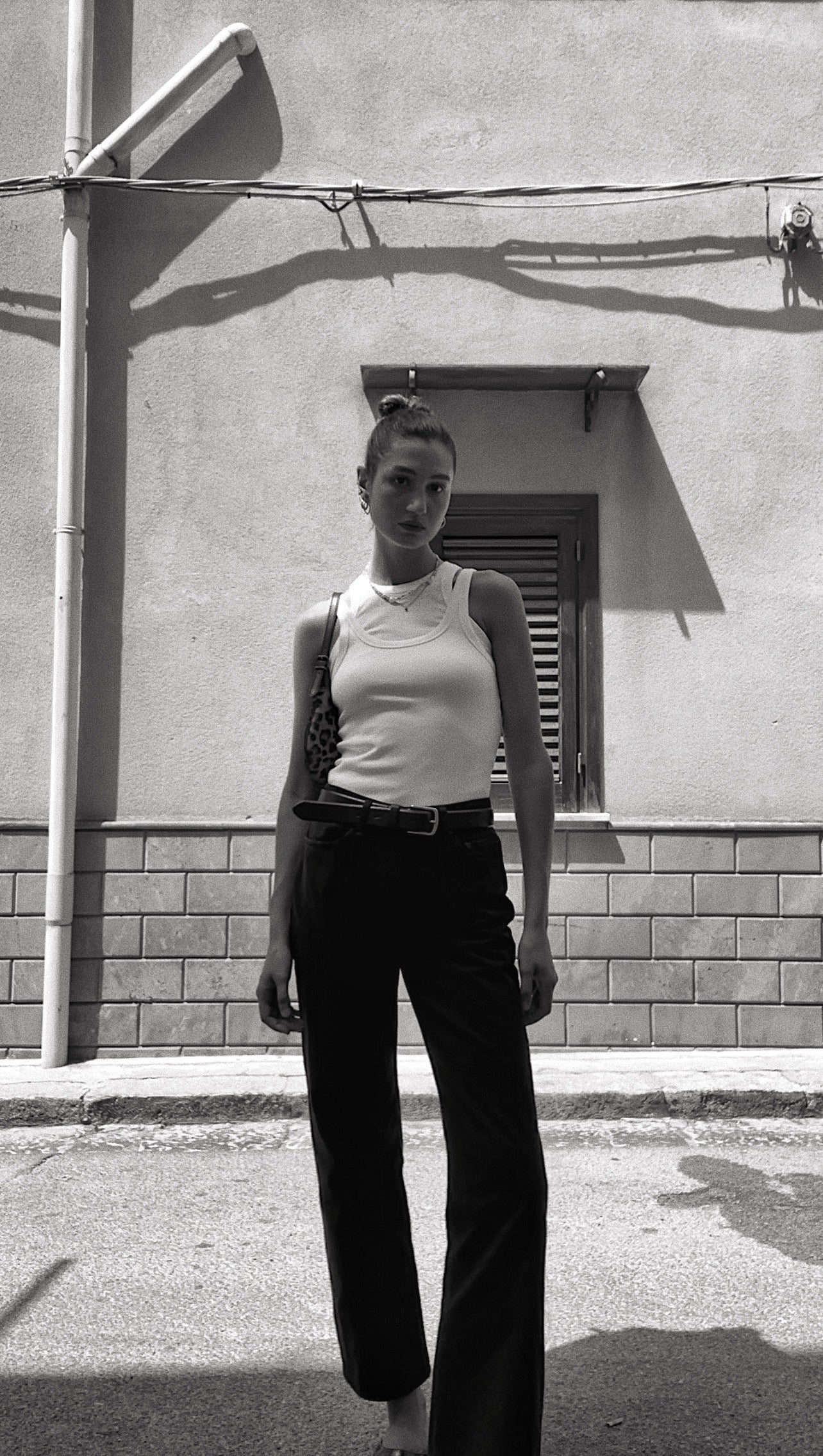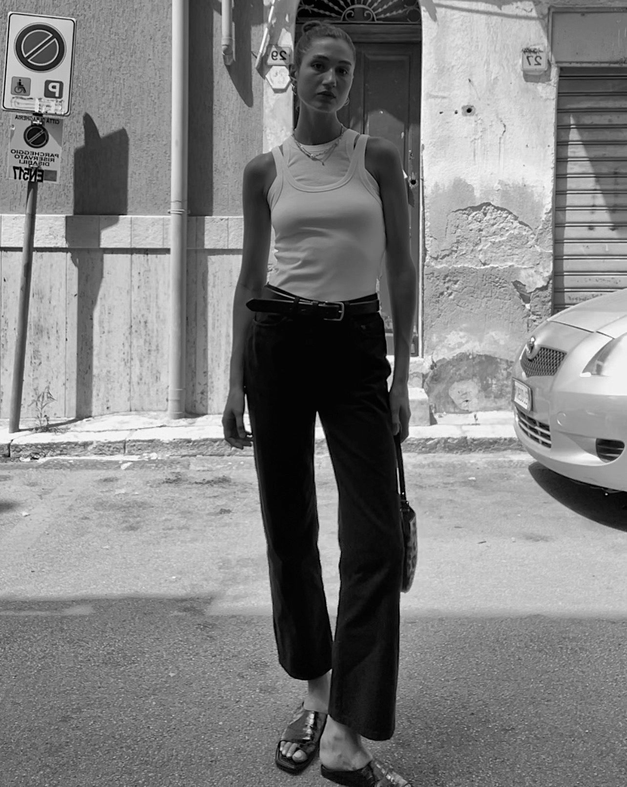 Roberta Pecoraro wears the Classic Straight Leg Jean, Classic Tank and Classic Scoop Tank