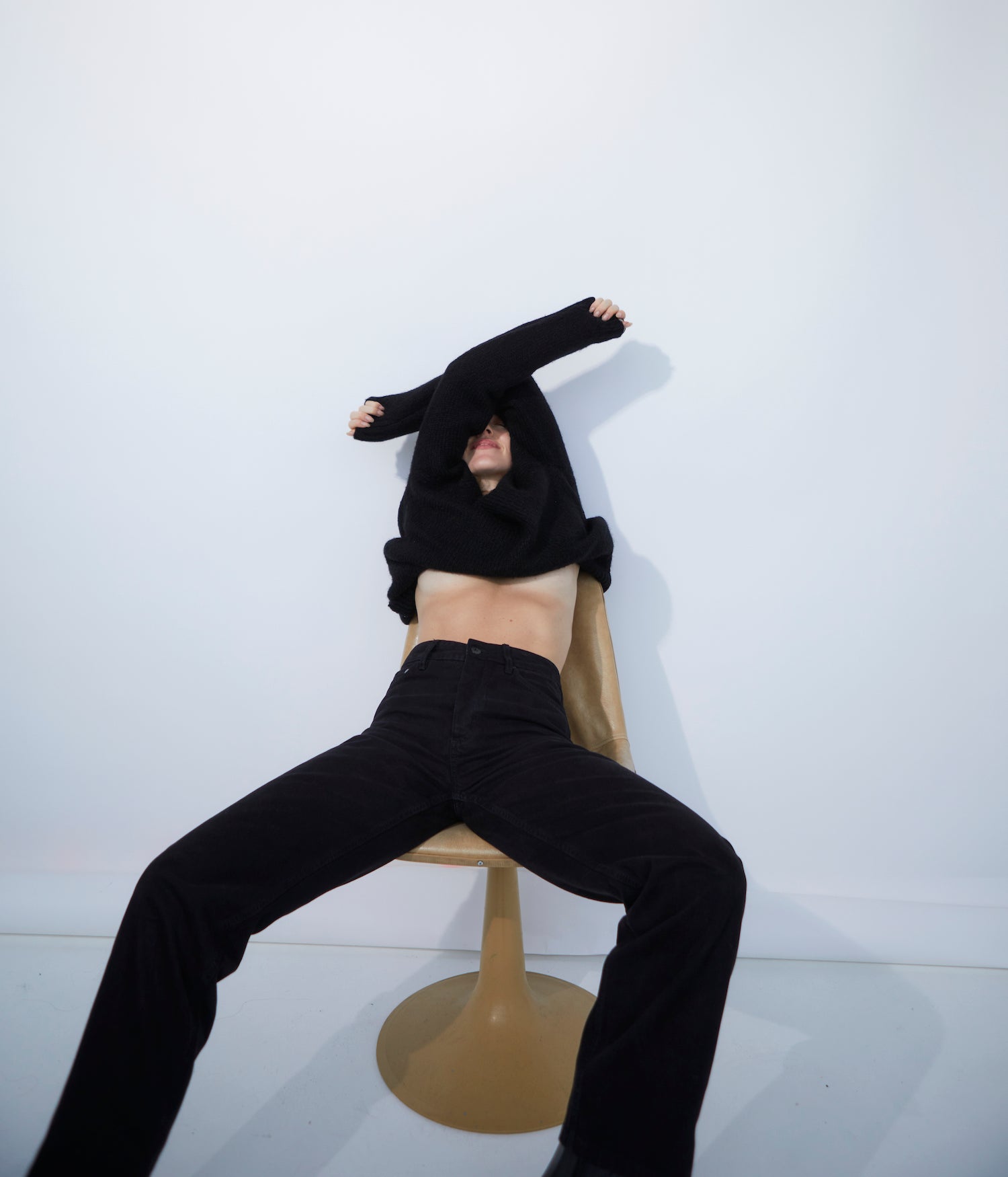 Ellie Coker wears the Classic Straight Leg Jean and Ciao V Neck Sweater